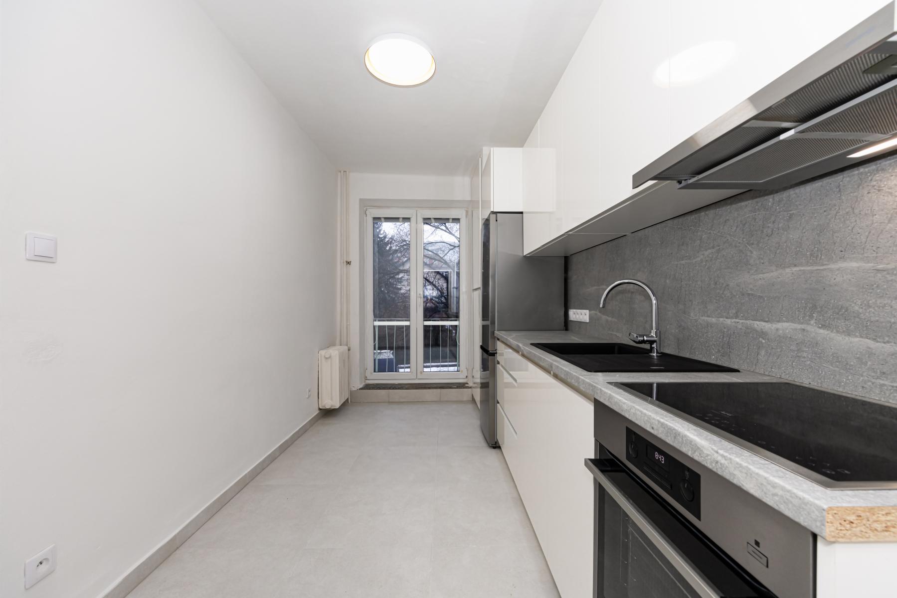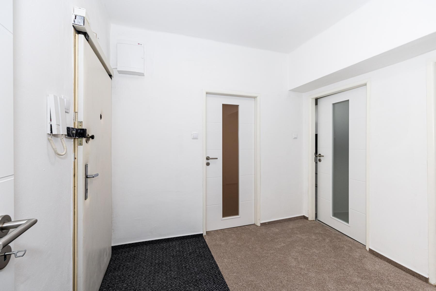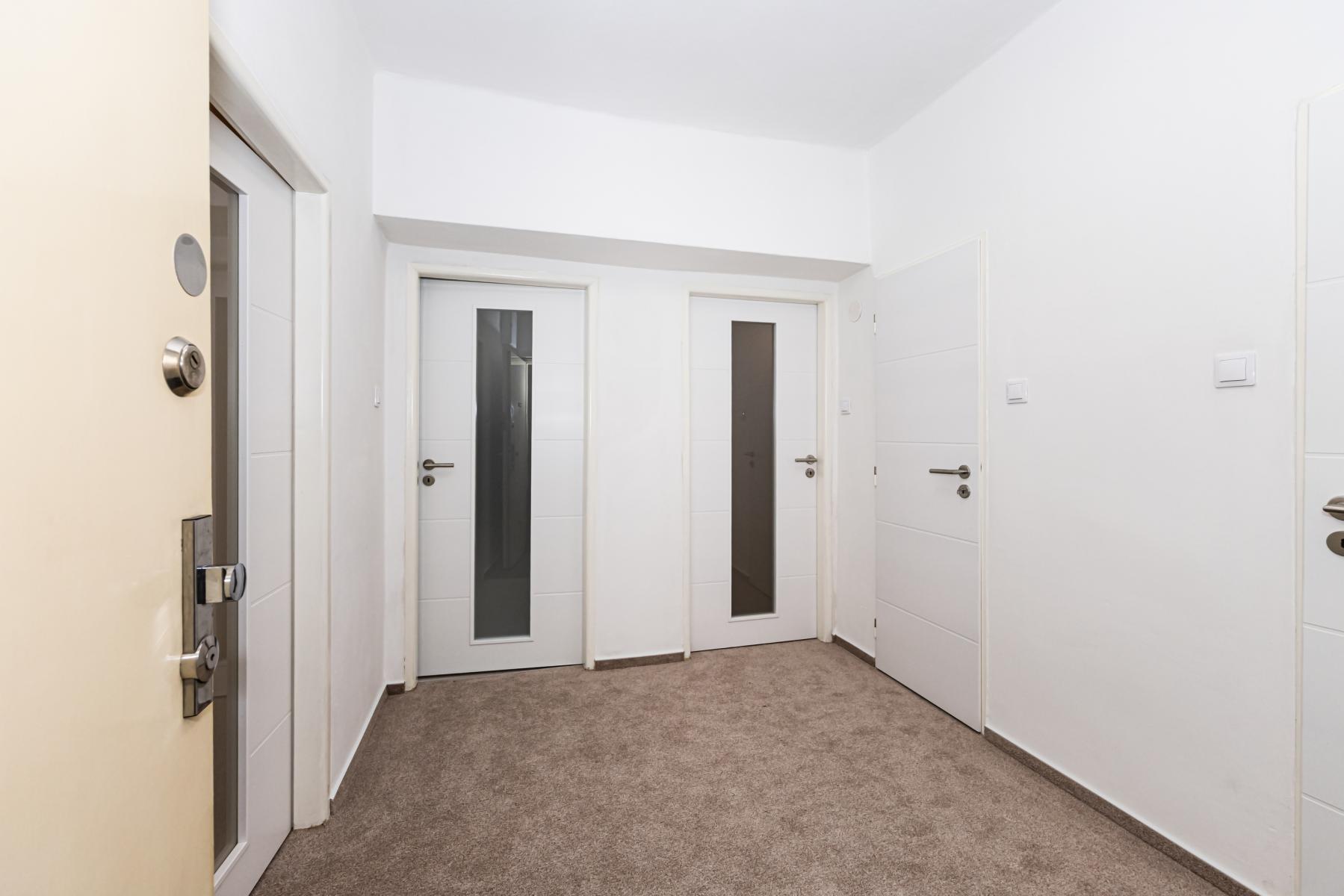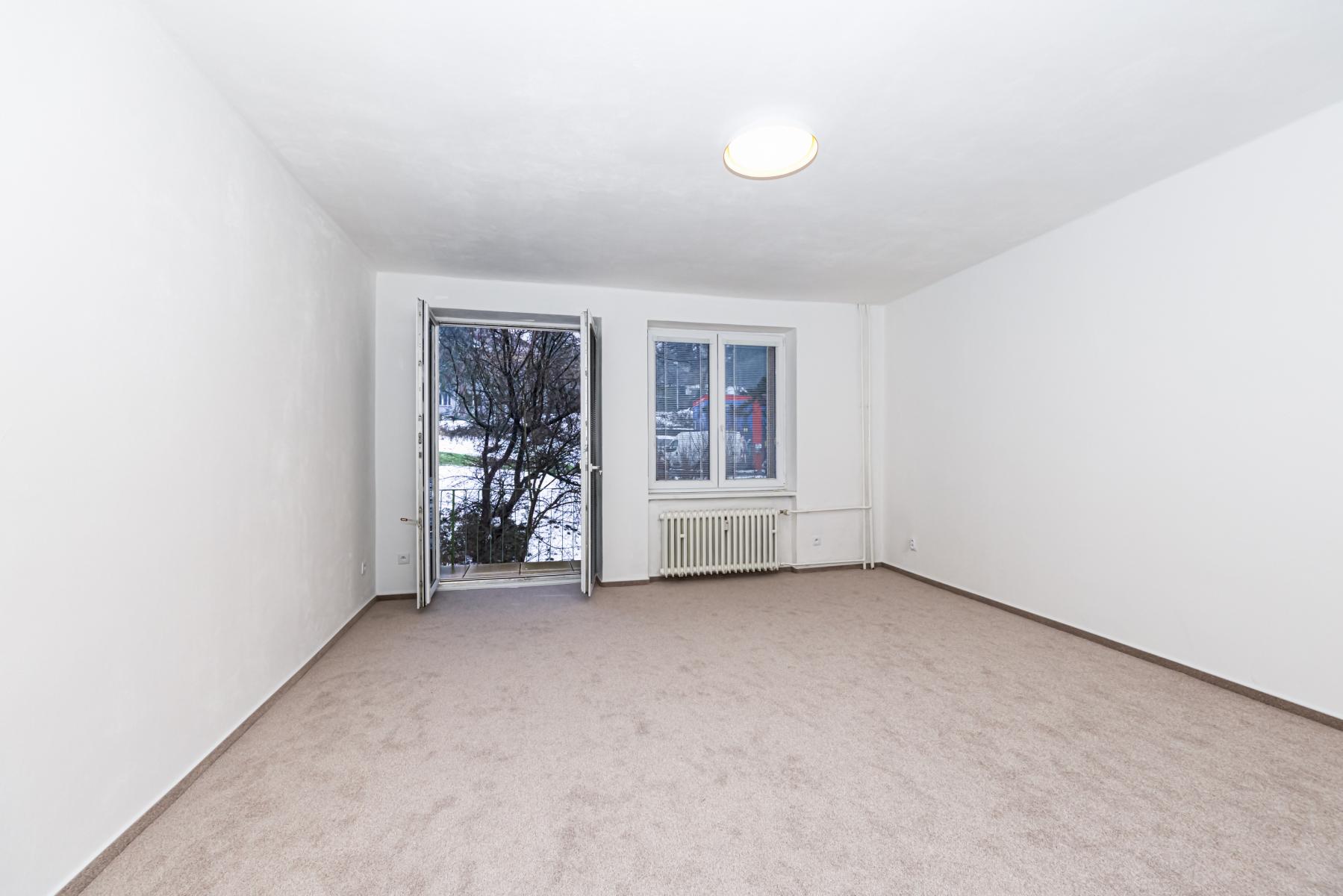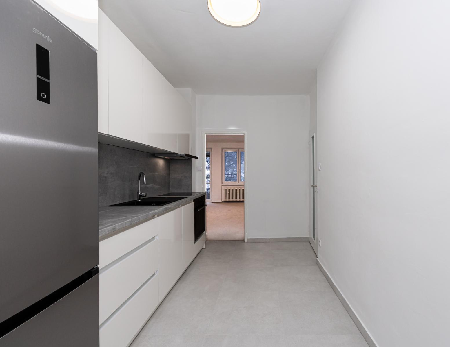 Byt prošel kompletní rekonstrukcí a je velmi dobře dispozičně řešen. Nabízí dvě samostatné ložnice, prostorný obývací pokoj s balkonem orientovaným do klidné zeleně za domem, samostatnou kuchyni, koupelnu se sprchovým koutem a oddělené WC. V koupelně je k dispozici pračka a sušička. Z prostorné vstupní chodby je přístup do všech místností, jedna z ložnic navazuje na obývací pokoj.