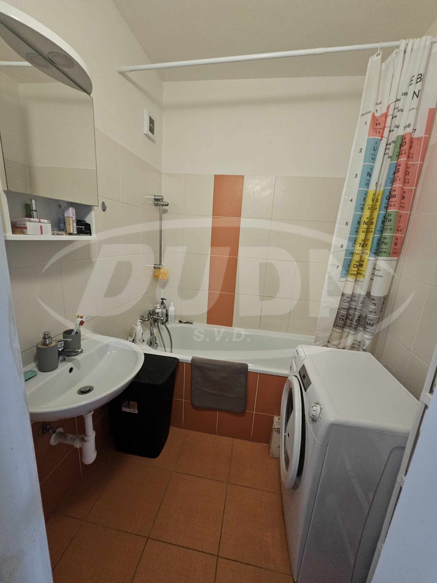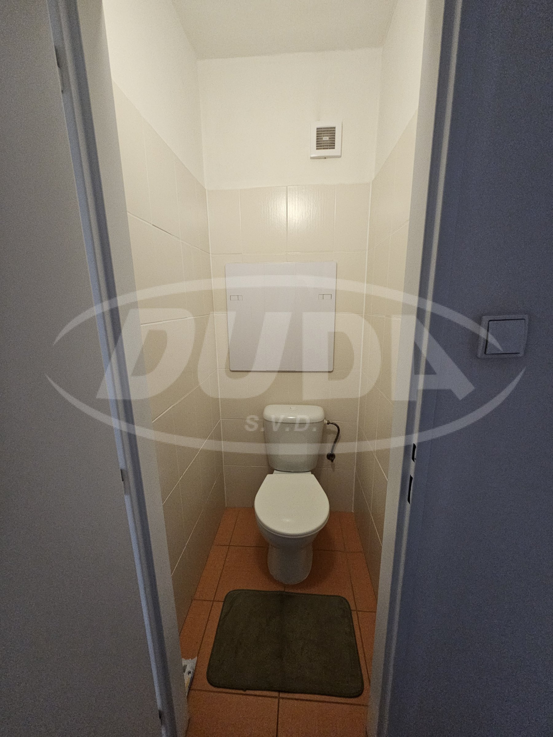 Koupelna je vybavena vanou, umyvadlem a připojením pro pračku. Toaleta je samostatná. Podlahy v pokojích jsou vinylové, v chodbě a soc. zázemí je dlažba.