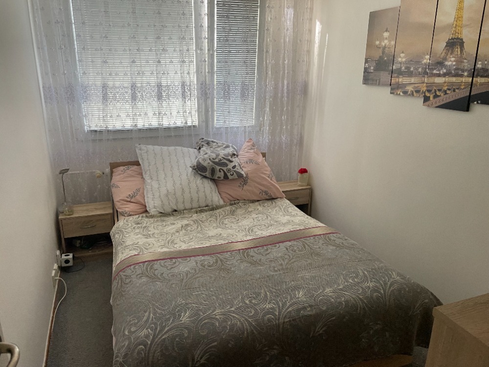 Jedná se o spoluvlastnický podíl o velikosti ½ na bytové jednotce dispozice 3+1, nacházející se ve 4.NP panelového domu s celkem 8 nadzemními podlažími. Střecha je plochá, bleskosvod je instalován, klempířské prvky jsou z pozinkovaného plechu, fasáda je zateplená. Výtah v domě je instalován, schody jsou betonové s povrchem z PVC. Okna jsou plastová, vnitřní dveře foliové, podlahy jsou z dlažby a laminátu. Kuchyň je s linkou, plynový sporák. WC je splachovací, koupelna se sprchovým koutem, umyvadlo. Vytápění je ústřední dálkové, vč.teplé vody. Bytový dům je po revitalizaci v roce 2010, byt byl zrekonstruován v roce 2009. Stav je dobrý, celkové vybavení je standardní. Dům je napojen na kompletní infrastrukturu.