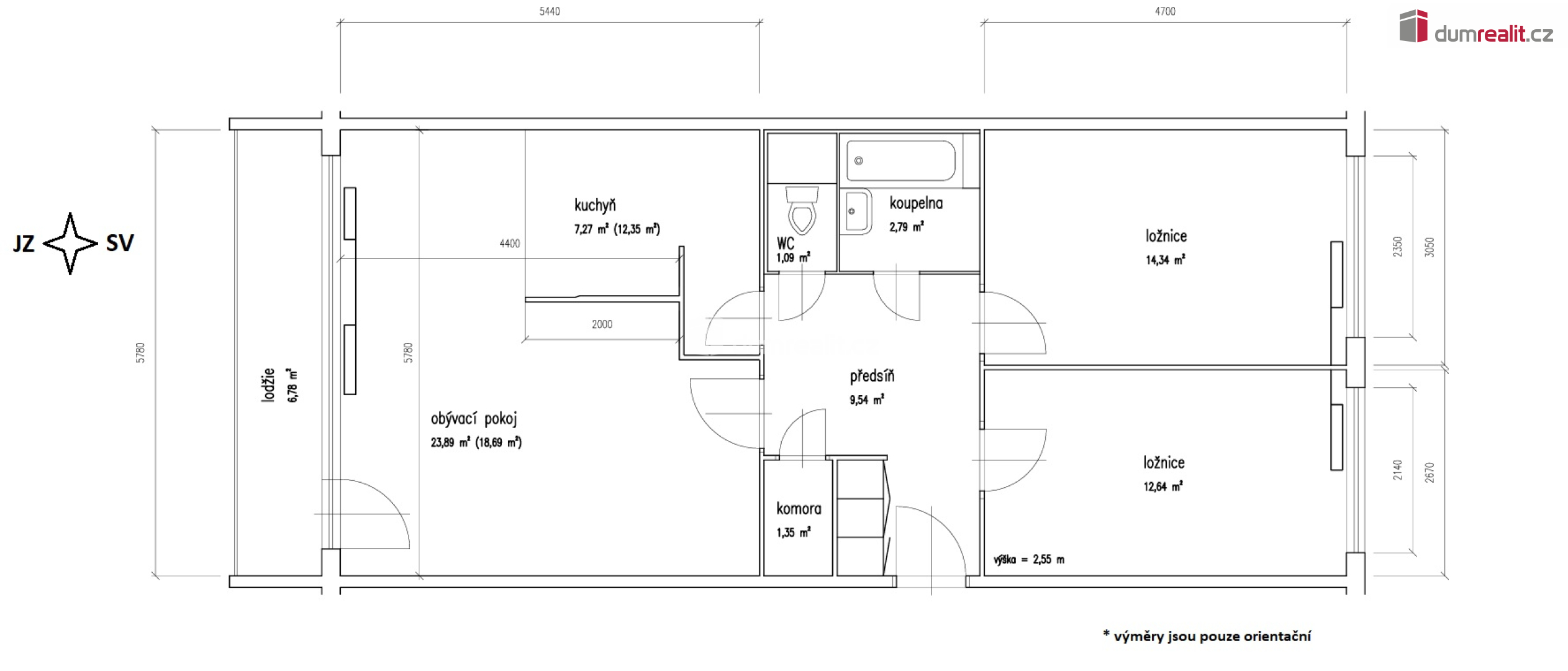 Byt má velmi prakticky řešenou dispozici, ideální pro rodinu s dětmi: