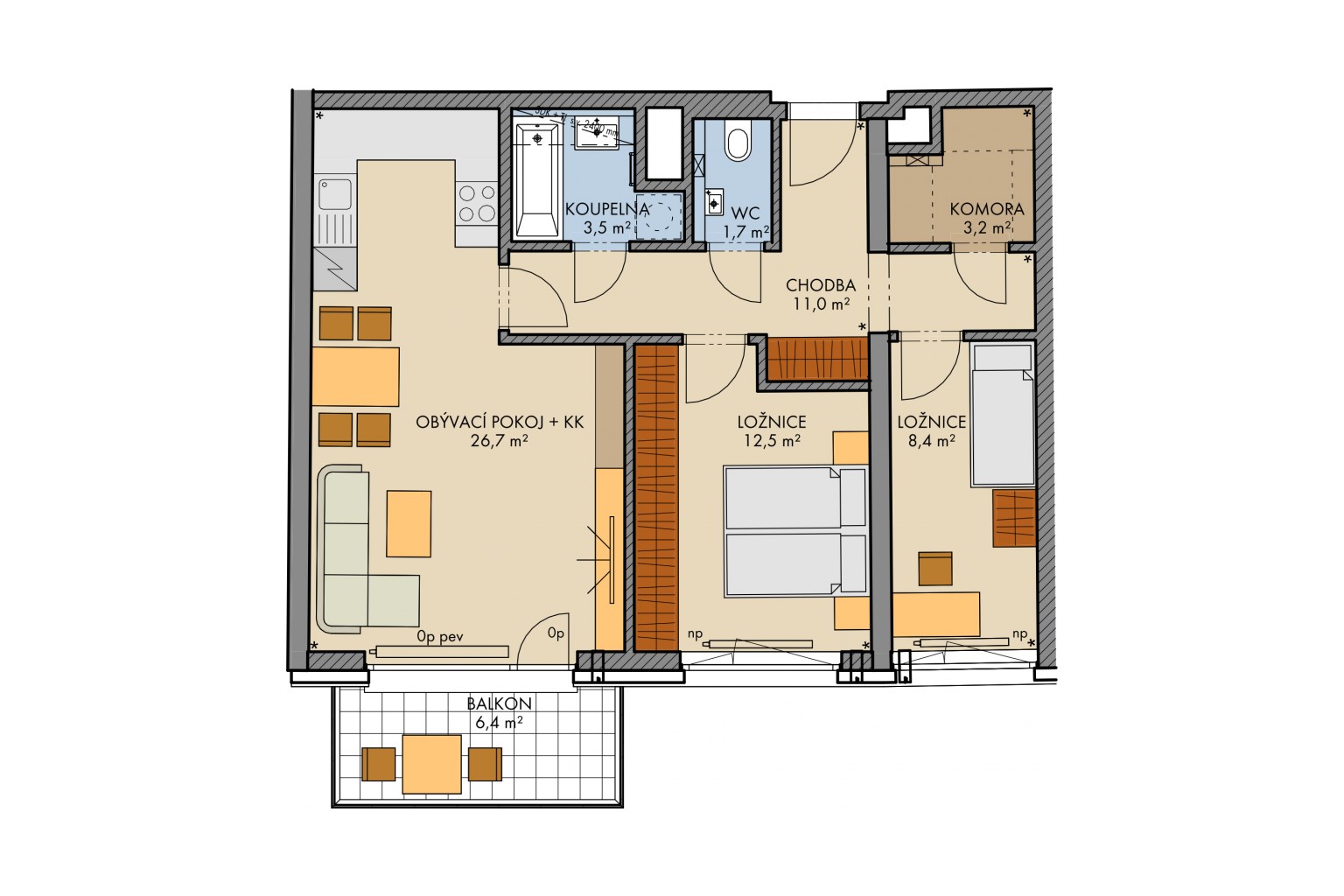 Nabízíme nový byt 3+kk o podlahové ploše 71,70 m2 s balkónem (6,40 m2) ve zcela novém projektu Nový Opatov developerské skupiny FINEP.