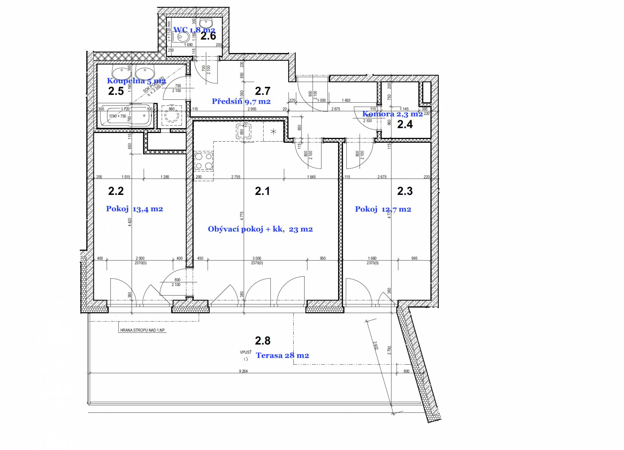 Novostavba 3+kk 74m2 hrubé plochy s obří terasou 28 m2 a dotekem přírody na Chodovci