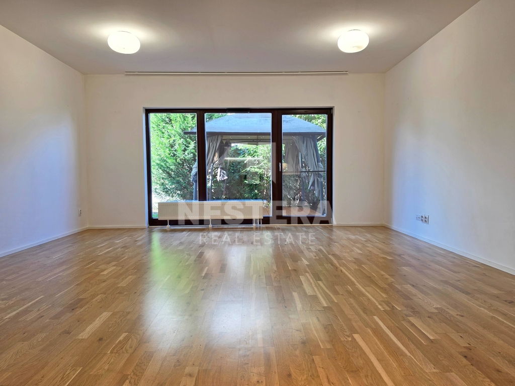 Velmi pěkný a prostorný byt 3+kk s podlahovou plochou 83,34 m2 a předzahrádkou o velikosti 70 m2, který má vlastní sklep a garážové stání.