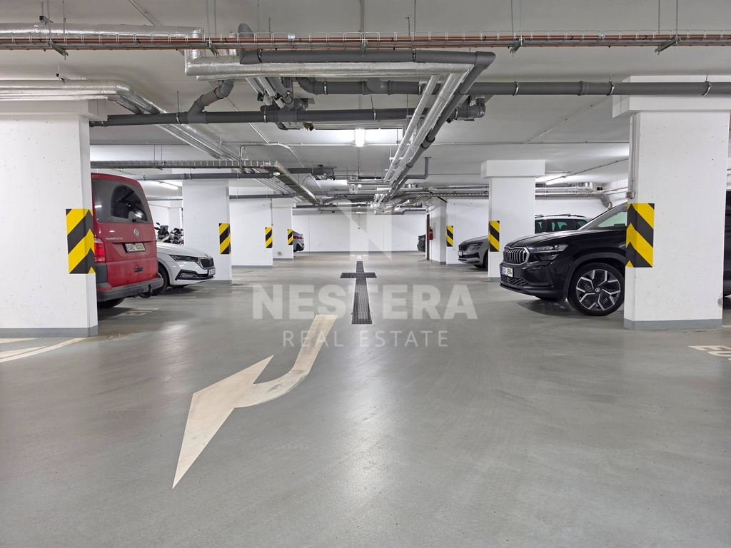 Vytápění a ohřev vody jsou řešeny dálkově. Připojení k internetu pomocí optiky. K bytu náleží sklep v přízemí a široké garážové stání v prvním podzemním podlaží domu.