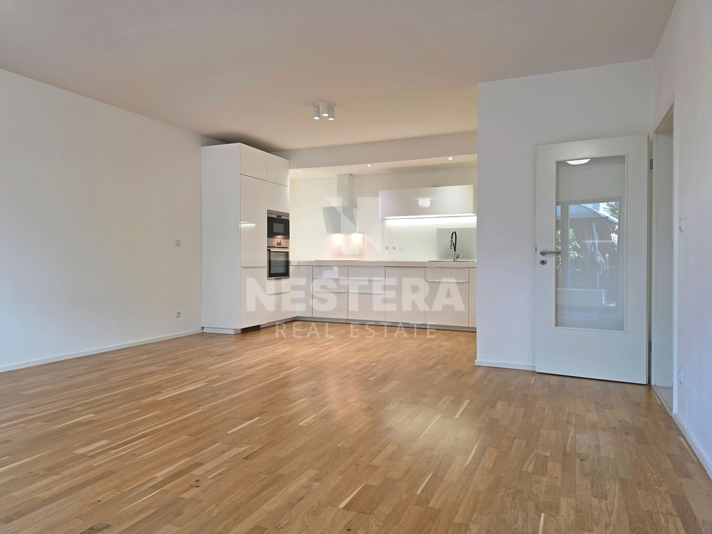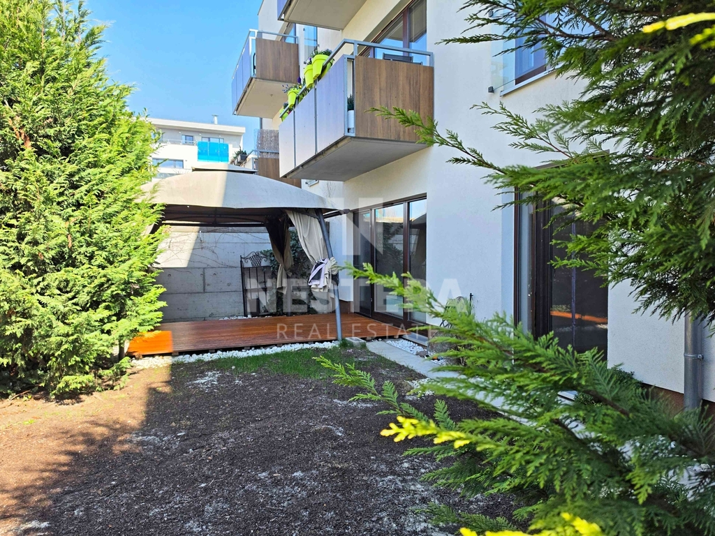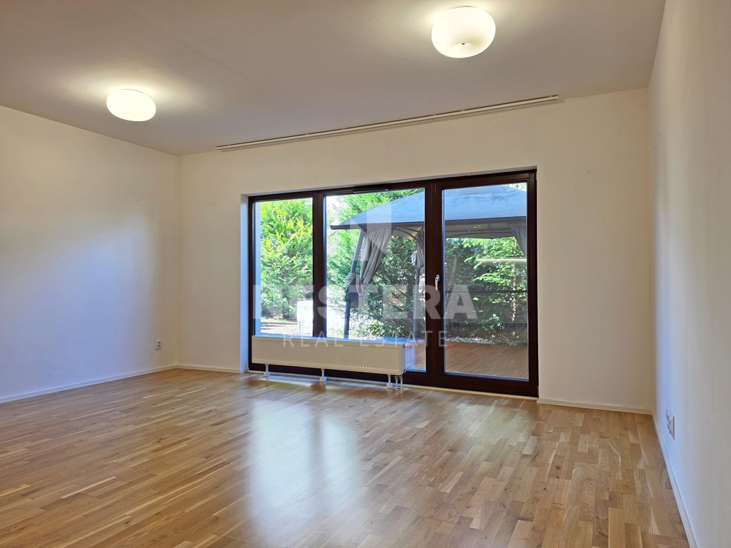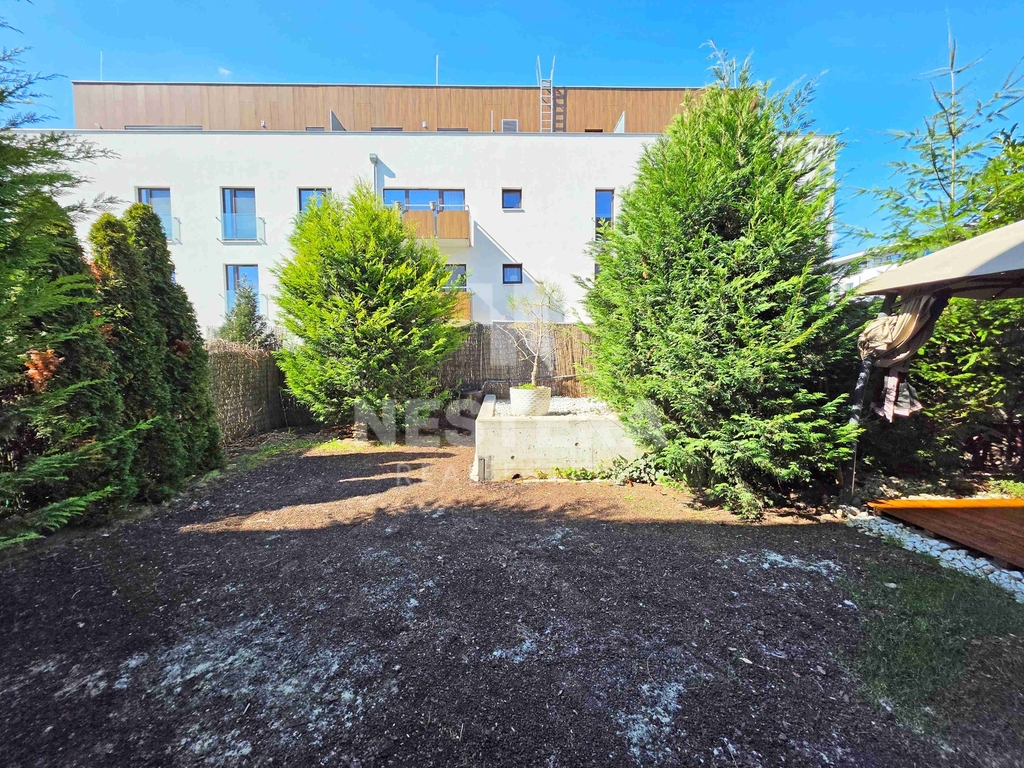 Velmi pěkný a prostorný byt 3+kk s podlahovou plochou 83,34 m2 a předzahrádkou o velikosti 70 m2, který má vlastní sklep a garážové stání.