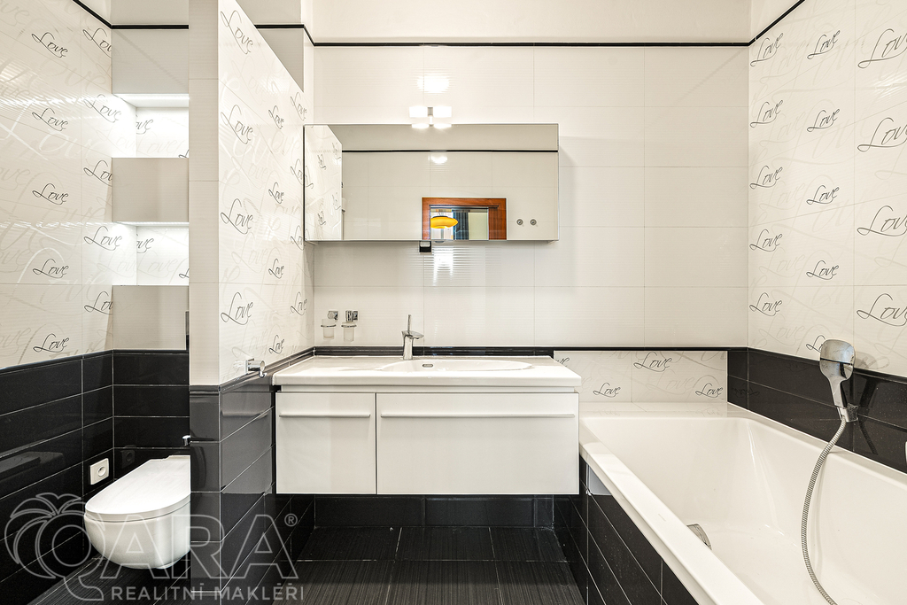 Byt po kompletní rekonstrukci se nachází ve 3. patře činžovního domu bez výtahu. V klimatizovaném obývacím pokoji s kuchyňským koutem najdete kompletně vybavenou kuchyňskou linku (velká americká lednice, myčka, plynová varná deska, horkovzdušná trouba, digestoř), barový jídelní stůl propojený s kuchyňskou linkou, gauč a televizní komodu. Na obývací pokoj navazuje hlavní ložnice s manželskou postelí a velkou vestavěnou skříní, propojená s designovou koupelnou. V ní najdete velkou vanu a toaletu. Další ložnice je vybavenou velkou, samostatně stojící skříní. Další úložné prostory v bytě zajišťují vestavěné skříně ve vstupní chodbě. V bytě najdete i druhou koupelnu, se sprchovým koutem a toaletou.