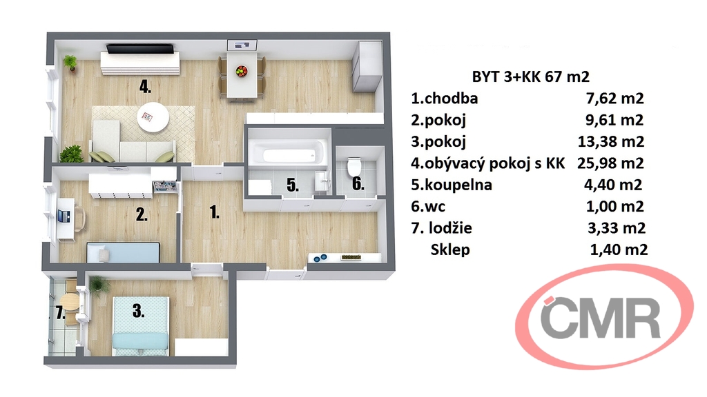 | Dispozice/podlahová plocha: | 3+kk/67 m² |