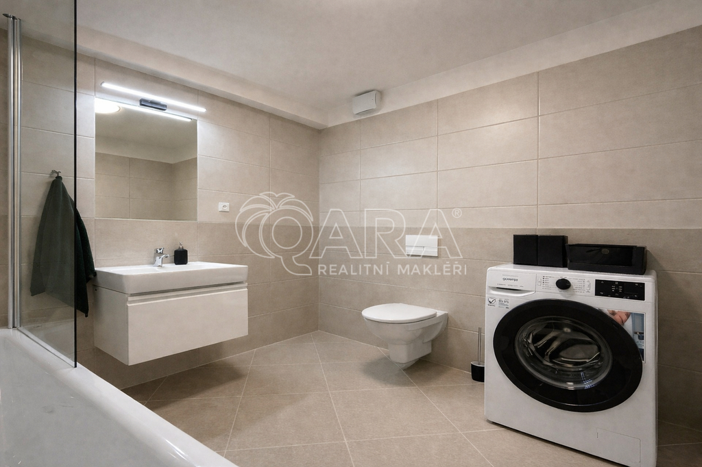 Interiér bytu je zařízen v moderním stylu s důrazem na kvalitu a praktičnost. K dispozici je plně vybavená kuchyňská linka se všemi spotřebiči, vestavné skříně poskytující dostatek úložného prostoru a nábytek na míru v obývacím pokoji. Ložnice je doplněna o pracovní kout, což ocení zejména zájemci pracující z domova. Velkým benefitem je komora přímo v bytě a další úložný prostor ve formě komory na patře.