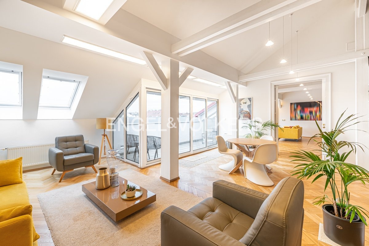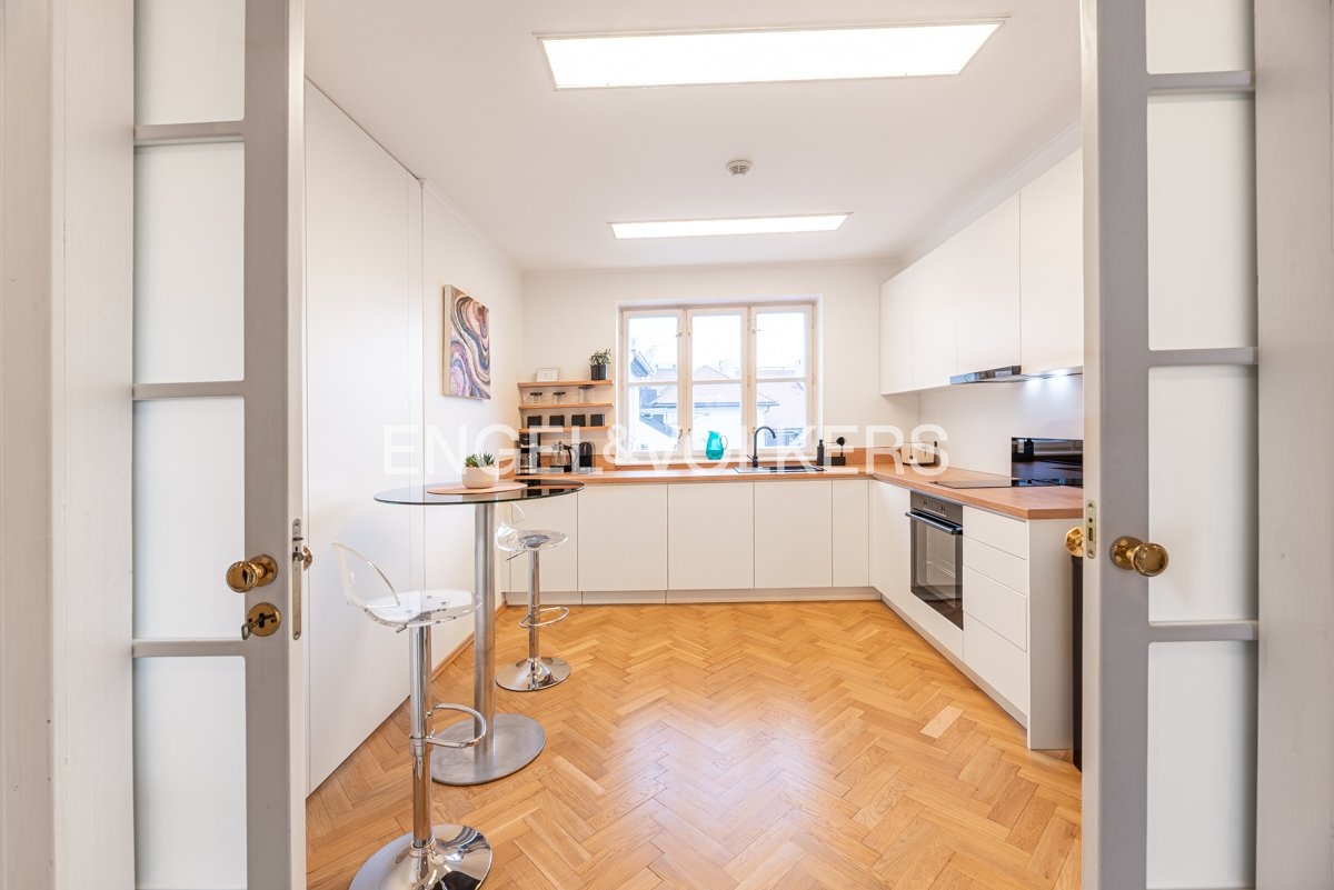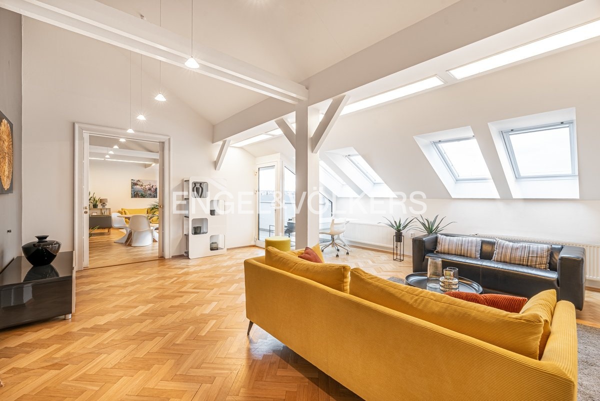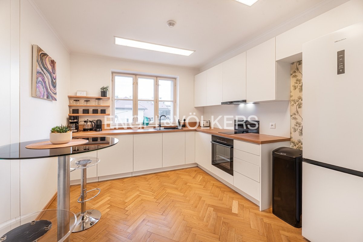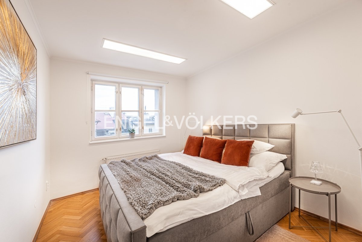 K dlouhodobému pronájmu je připravený výjimečný byt 4+1 v původním činžovním domě s výtahem, situovaný na prestižní adrese v srdci Malé Strany. Díky své poloze v nejvyšším patře a střešním oknům je byt mimořádně světlý a vzdušný. Velkým benefitem je soukromá terasa s dechberoucím výhledem na Národní divadlo, Masarykovo nábřeží a historické centrum Prahy.