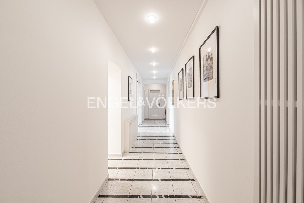 Dispozice bytu zahrnuje dvě prostorné dominantní místnosti propojené elegantními posuvnými dveřmi, které umožňují variabilní uspořádání prostoru. Dále zde najdete dvě menší místnosti, z nichž jedna směřuje do klidného vnitrobloku a je ideální jako ložnice či pracovna. Samostatná kuchyně je dostatečně prostorná a vybavená pro pohodlné vaření. Byt disponuje dvěma koupelnami, samostatnou toaletou a praktickou technickou místností.