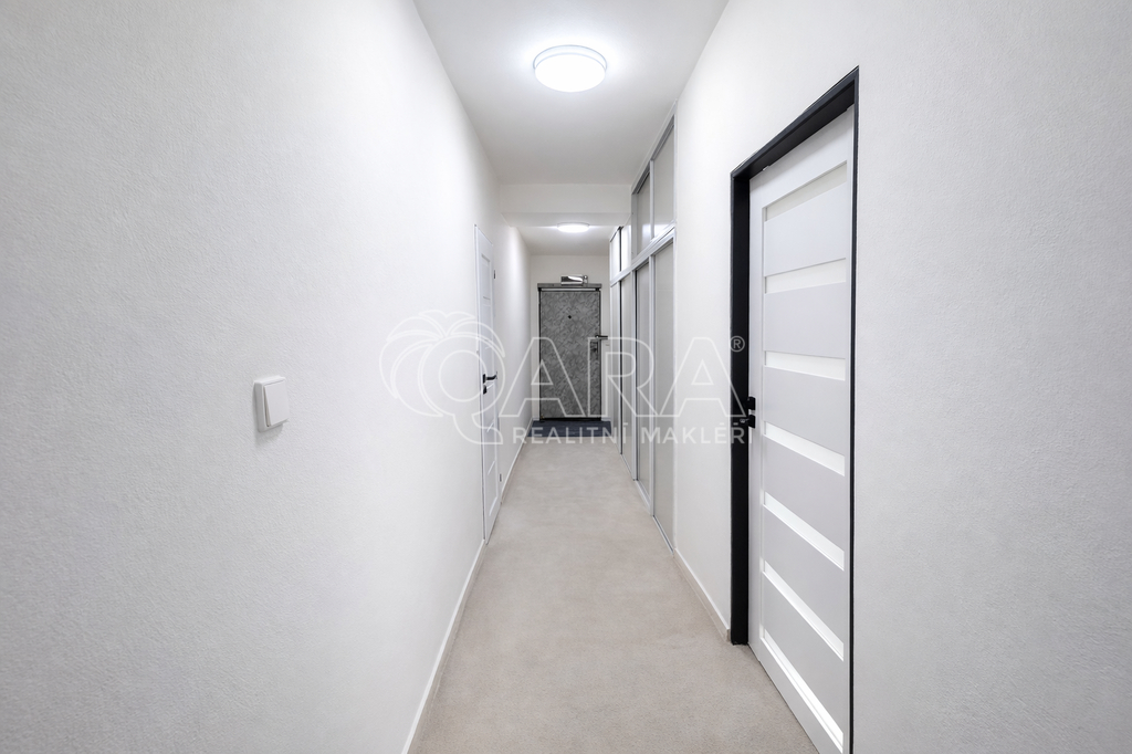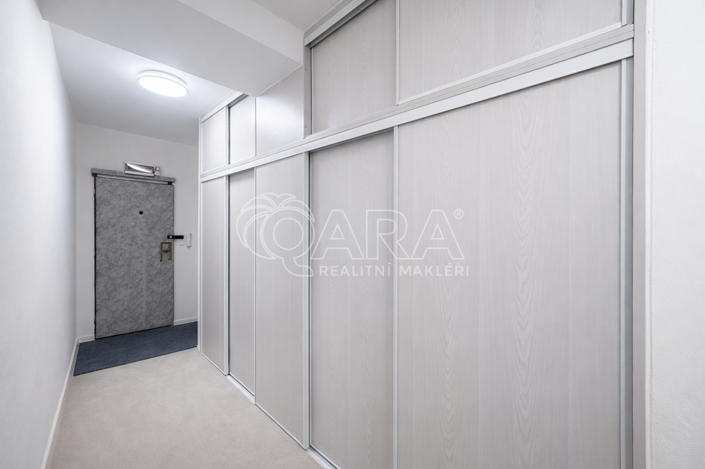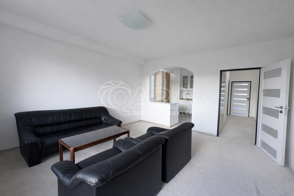 Jednotka se nabízí částečně vybavena, viz fotografie. Po domluvě s novým nájemníkem je však možné odstranění nábytku. K dispozici jsou tři samostatné, neprůchozí pokoje, vhodné jako ložnice, pracovna nebo dětský pokoj ve kterých jsou vestavěné skříně. Obývací pokoj se vstupem na zasklenou lodžii a kuchyní, která disponuje lednicí, myčkou, troubou, varnou deskou, digestoří a dostatkem úložného prostoru. Z bytu je nádherný výhled na rozlehlou přírodu. V chodbě jsou k dispozici prostorné, vestavěné skříně. Koupelna disponuje vanou, sprchovým koutem, umyvadlem, toaletou, otopným žebříkem a pračkou. Jedna další toaleta se nachází v chodbě samostatně.
