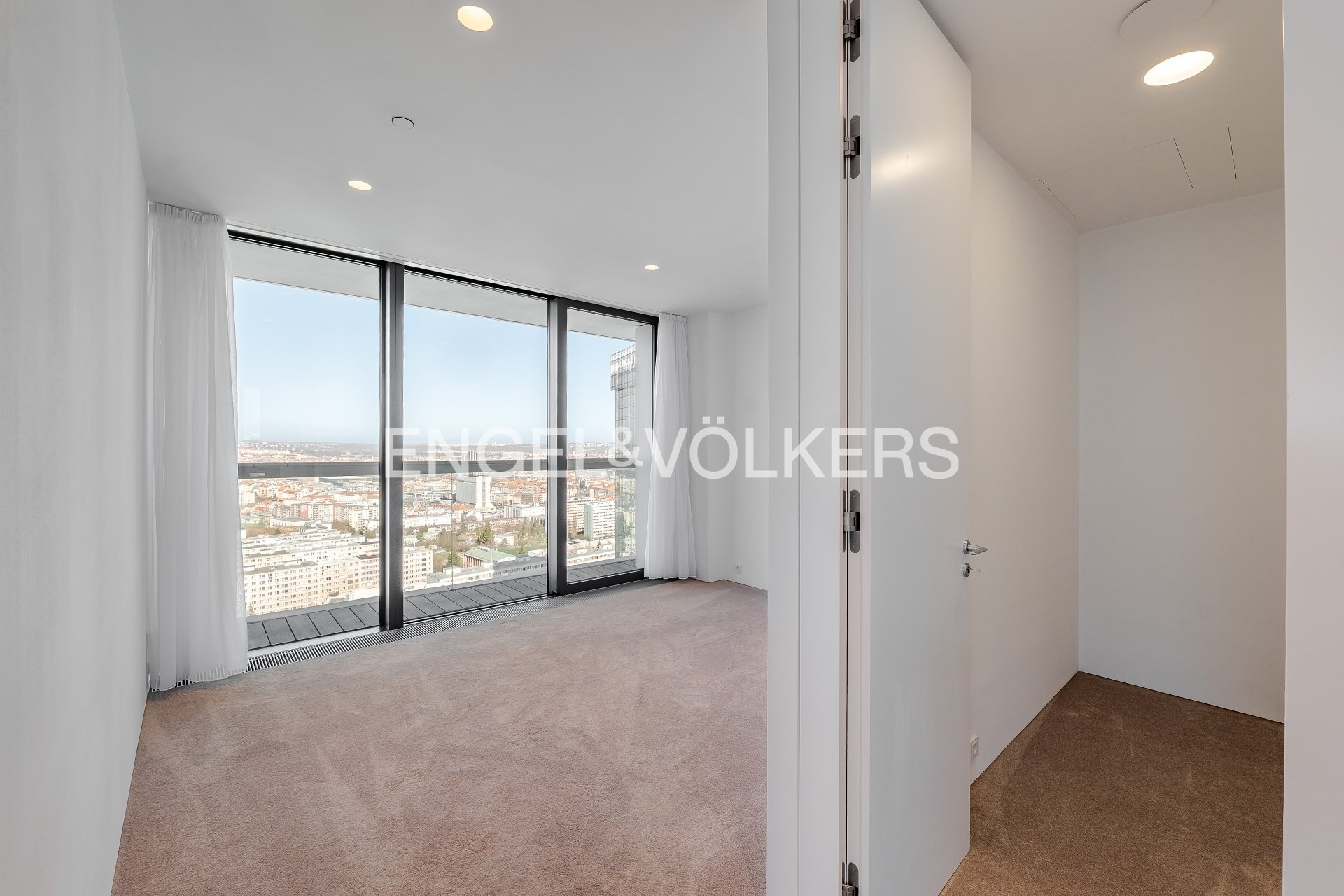 Představujeme k prodeji výjimečný luxusní byt s dispozicí 4+kk v prestižní rezidenci V Tower z roku 2018, který se nachází ve 25. nadzemním podlaží západní věže. Tento jedinečný byt o vnitřní užitné ploše 194 m² doplňuje prostorná terasa o velikosti 57 m², ze které si můžete vychutnat úchvatné panoramatické výhledy na Prahu hned ze tří světových stran, včetně pohledů na centrum města, Pražský hrad či Vyšehrad.