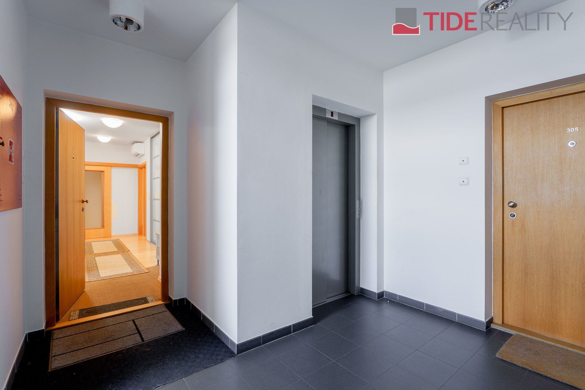 Za bezpečnostními vstupními dveřmi vcházíte do předsíně (18m2) se samostatnou prostornou komorou a s velkou vestavěnou skříní. Z centrální chodby jsou vstupy i do všech místností v bytě: do třech ložnic (18,17 a 16m2), koupelen a dále do velmi světlého obývacího pokoje s kuchyní (34m2) propojeného s prostorným balkonem (2m x 4,8m), kam se vejdou i pohodlná křesílka a případně i gril. Všechny ložnice jsou orientované na sever do zeleně, nabízí tak uklidňující a ničím nerušený výhled do lesoparku a hlavně klidný spánek při otevřeném okně. Tento byt má dále k dispozici 2 koupelny. Koupelna se sprchou, umyvadlem a WC se nachází u hlavní ložnice, ostatní pokoje (dětské pokoje) sousedí s koupelnou vybavenou vanou, dvěma umyvadly, WC a přípojkami na na pračku a sušičku.