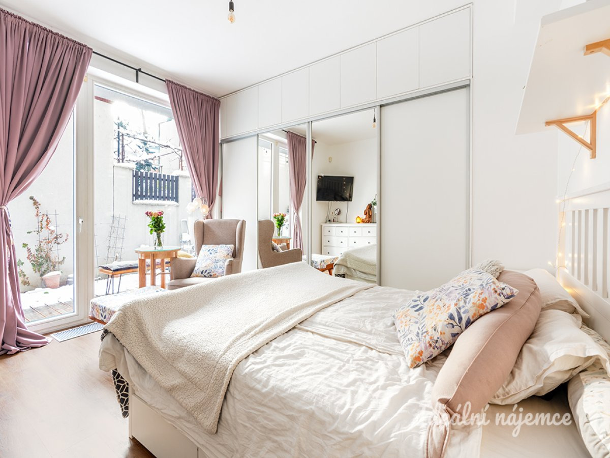 Byt je k pronájmu plně zařízený s nemalou investicí, s vestavěnou kuchyňskou linkou, parní troubou, šatními skříněmi, postelí a v neposlední řadě krásnou dřevěnou terasou. Obrovská výhoda je možnost parkování přímo na pozemku vedle terasy, tudíž odpadá nutnost parkování v ulici na zónách.