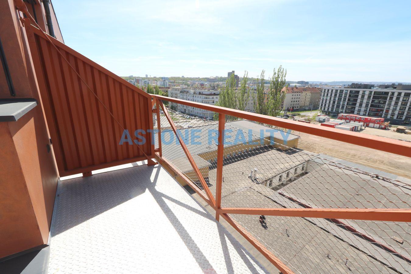 Exkluzivně Vám nabízíme k pronájmu krásný, zcela nový byt loftového typu s dispozicí 2+kk s balkonem a s terasou v novém projektu v Praze 9, Vysočany, v ulici Kolbenova. Světlý byt o velikosti 48 m2 s balkonem 5 m2 a terasou 11 m2 se nachází v pátém, posledním patře cihlového domu s výtahem. Je nabízen nezařízený, moderní kuchyňská linka je vybavena všemi vestavnými spotřebiči včetně indukční varné desky, trouby, digestoře, mikrovlnné trouby, myčky, pračky a lednice s mrazákem. Byt je vybaven klimatizací, rekuperací a podlahovým vytápěním. V koupelně se nachází sprchový kout a toaleta. Možnost pronájmu nadstandardně velkého garážového stání za 4.341,- Kč včetně poplatků /pronájem parkovacího stání není podmínkou/. Celý objekt je v energetické třídě B, velmi úsporné. Výborná dopravní dostupnost, přímo u domu se nachází tramvajová zastávka, odtud 3 min na metro B Vysočanská. V okolí veškerá občanská vybavenost, OC Galerie Fénix, O2 arena, Galerie Harfa, restaurace, kavárny, poliklinika. Volné ihned k nastěhování, majitel preferuje nájemce bez zvířat, případně jeden pejsek nebo jedna kočička není překážkou.
