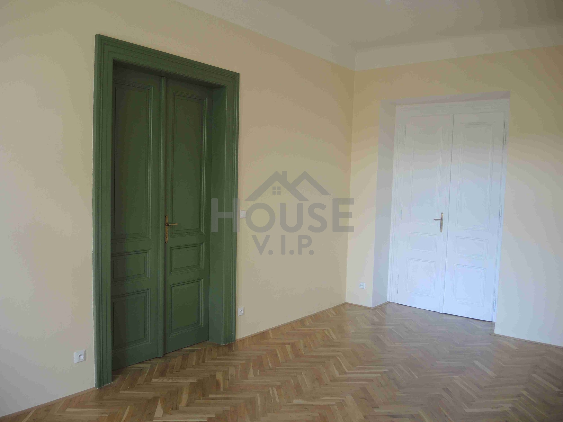 Elegantní parketové podlahy podtrhují charakter interiéru a vysoké stropy 3.20 m umocňují prostorovou svěžest.