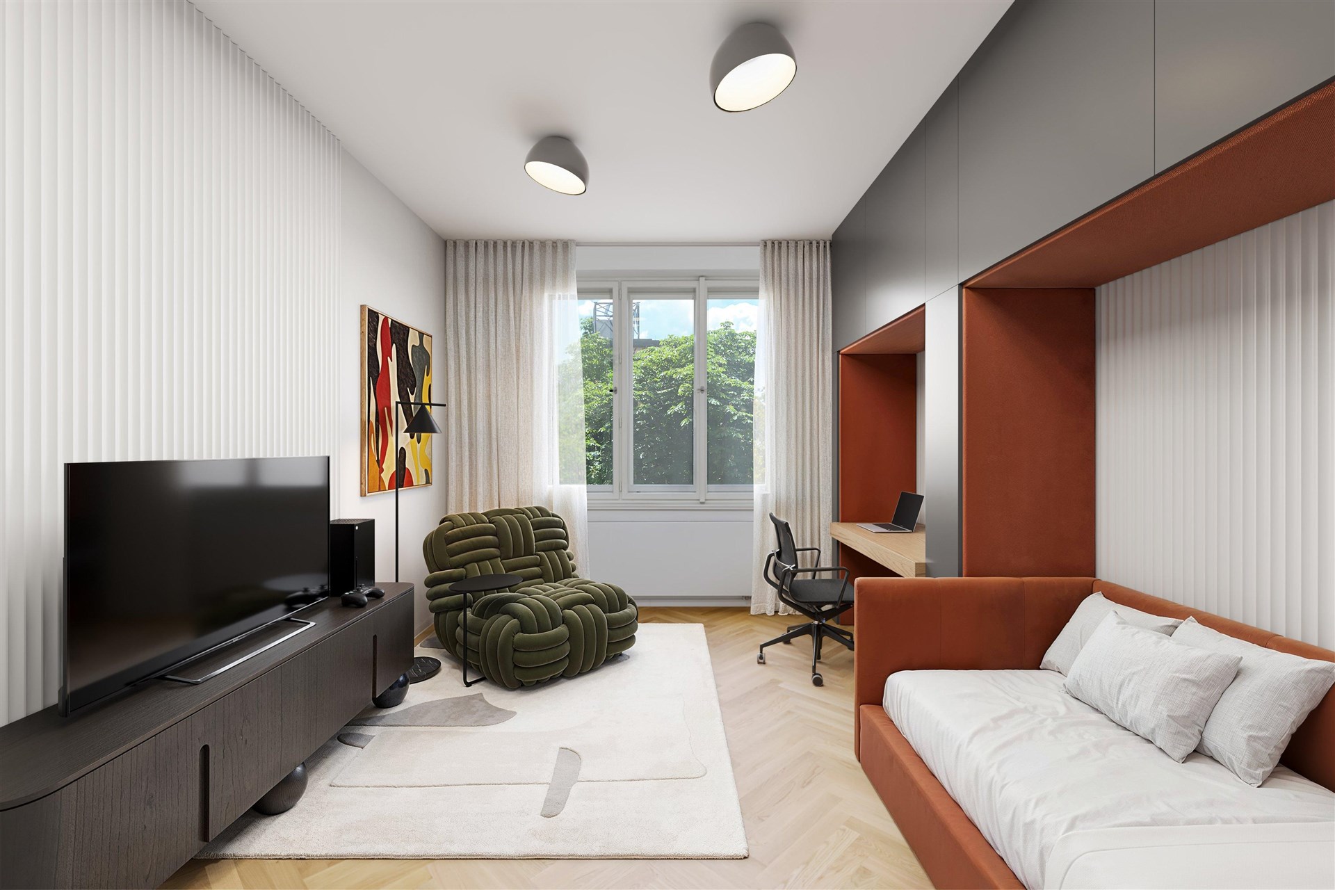 - Jednotka ve stavu FIT OUT nabízí nové parkety i omítky, nové interiérové i vchodové dveře a kompletní nové rozvody.