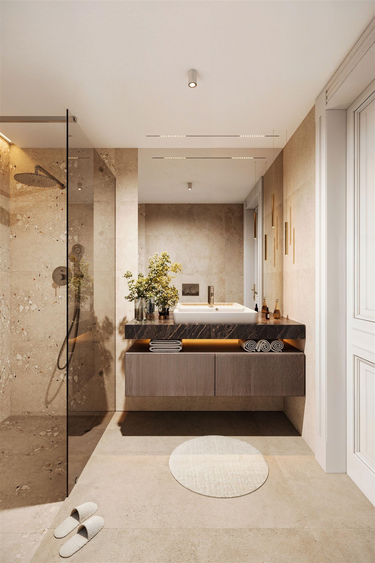 Jednotka je dokončena v provedení fit out s vysokým standardem jako jsou dřevěné parkety, špaletová okna a nadčasově elegantní koupelnou, která podtrhuje její moderní charakter. Elegantní bytový dům po kompletní rekonstrukci společných prostor nabízí materiály jako terazzo, broušené sklo či benátské štuky, které doplňují moderní bezpečnostní dveře a nový prosklený výtah. K dispozici bude také upravený vnitroblok a pro maximální komfort rezidentů i sauna.