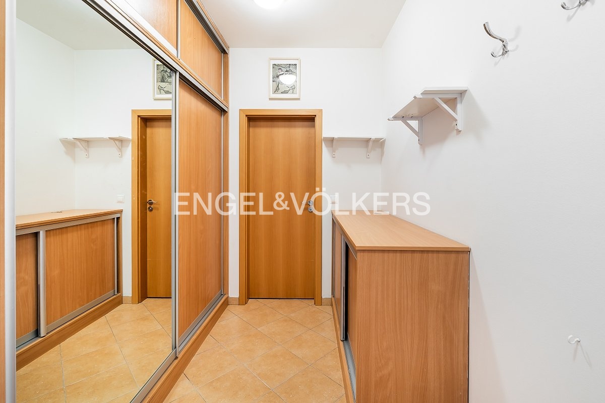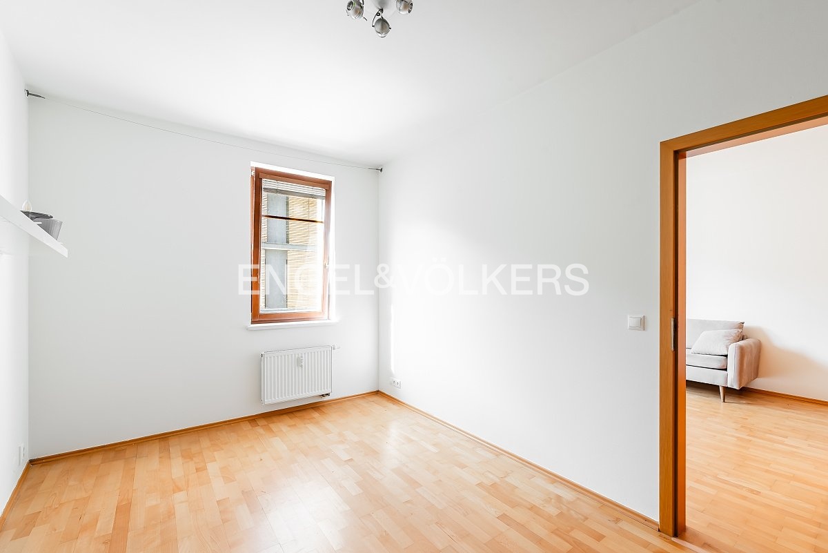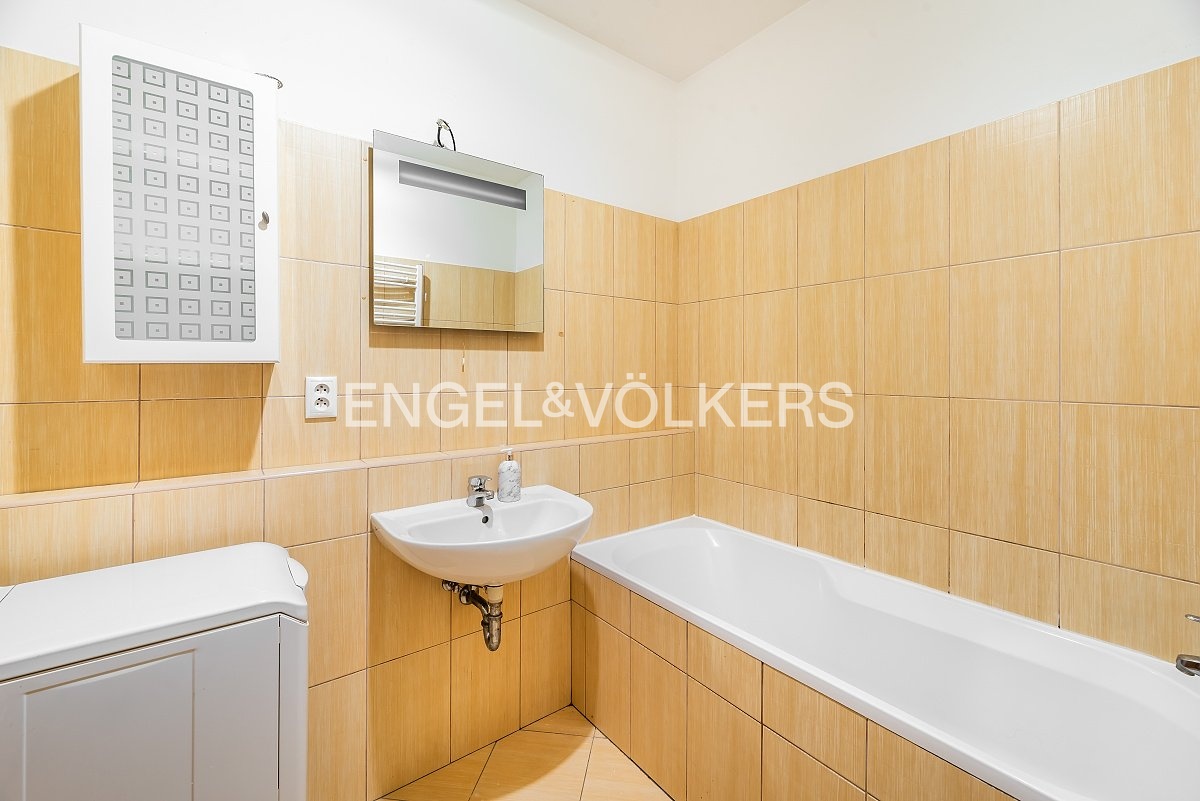 Byt se nachází ve třetím podlaží novostavby z roku 2008 v pěší dostupnosti metra Radlická a tři minuty chůze od nejbližší tramvaje. Na Anděl se lze dostat během 12 minut. Ulice je klidná a obklopuje ji park Kesnerka. Obývací pokoj se vstupem na balkon je oddělen barovým pultem od kuchyňského koutu vybaveného základními spotřebiči. V ložnici je mimo jiné k dispozici prostorná vestavěná skříň, druhá se pak nachází v chodbě. Byt je částečně zařízen nábytkem včetně manželské postele, psacího stolu, konferenčního stolku, televizní skříně a komody. V koupelně je vana, pračka a toaleta. V ceně služeb je dodávka a ohřev vody, vytápění bytu a domovní služby. Za příplatek 1500 Kč je možný pronájem garážového stání. V domě je výtah a součástí nájmu je sklep.