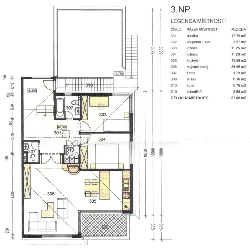 Byt se nachází ve 2. patře čtyřpatrové vily. Celková plocha bytu je 98 m2 + terasa 35 m2. Dominantou bytu je obývací pokoj s kuch. koutem a krbem, ze kterého je přístup na terasu. Ložnice jsou navzájem neprůchozí. Koupelna je vybavena vanou, umyvadlem a WC, v bytě se nachází další samostatné WC. Podlahy jsou z dubového dřeva, stejně jako vnitřní dveře. Byt je vybaven kuch. linkou včetně zabudovaných spotřebičů a je částečně vybaven nábytkem. Vytápění a ohřev teplé vody zajišťuje plynový kotel. K bytu náleží jedno venkovní parkovací stání. Zálohy na služby a energie je 4.000 Kč/měs a je každoročně vyúčtována dle spotřeby. Majitel požaduje kauci ve výši 2 nájmů, provize činí 35.000 Kč.