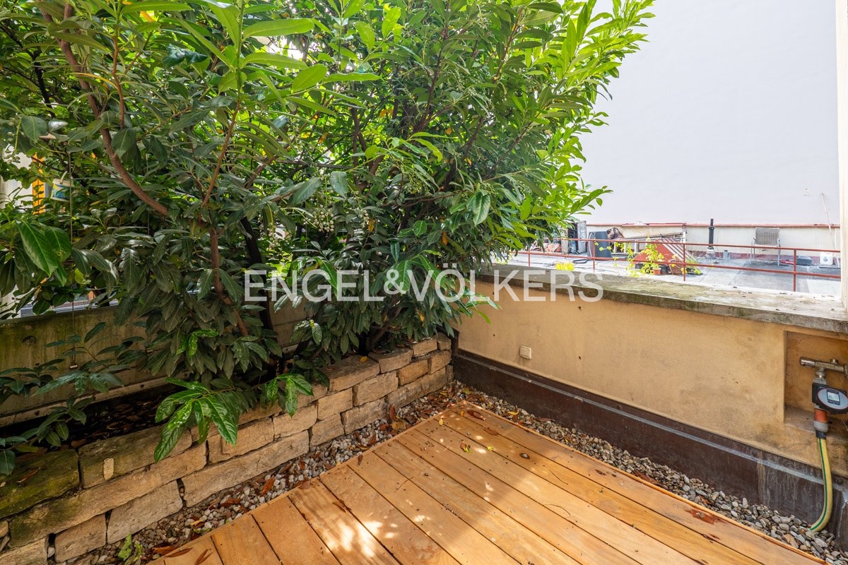 Byt s oblíbenou dispozicí 3+1 v historické částí domu nabízí vstupní halu, vzdušný obývací pokoj, samostatnou plně vybavenou kuchyň s výstupem na terasu, světlou ložnici a pracovnu. Koupelna je navrhnutá v kombinaci mramoru a benátského štuku, vybavená vanou a umyvadlem. Samostatná toaleta je přístupná z chodby. Bonusem je venkovní prostor v podobě dvou teras. Byt je dokonalou kombinací původních a moderních architektonických prvků. Profilovaný pohledový beton tvoří výborný kontrast s masivní dubovou podlahou. Do bytu, který se nachází ve čtvrtém NP Vás zaveze výtah, který se nachází u recepce, která objekt střeží 24/7.