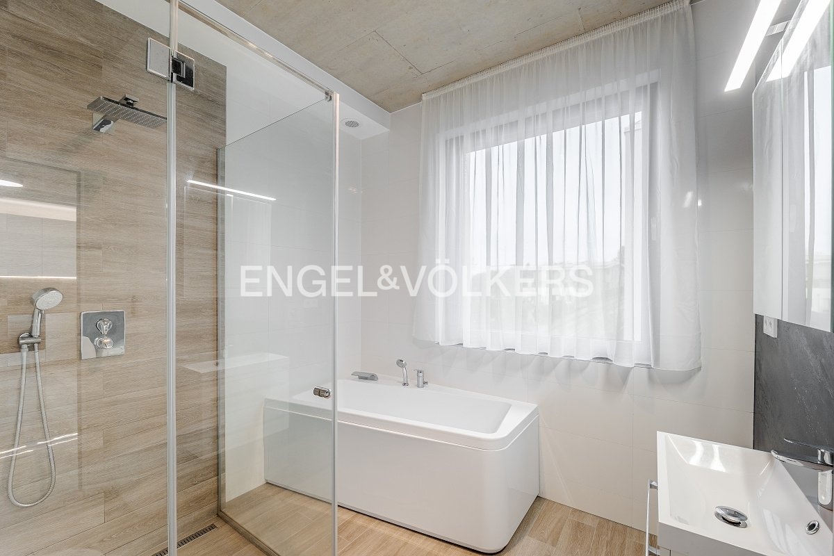 Dostatek světla zajišťují velká okna, součástí jsou také elektrické předokenní výsuvné a naklápěcí rolety.