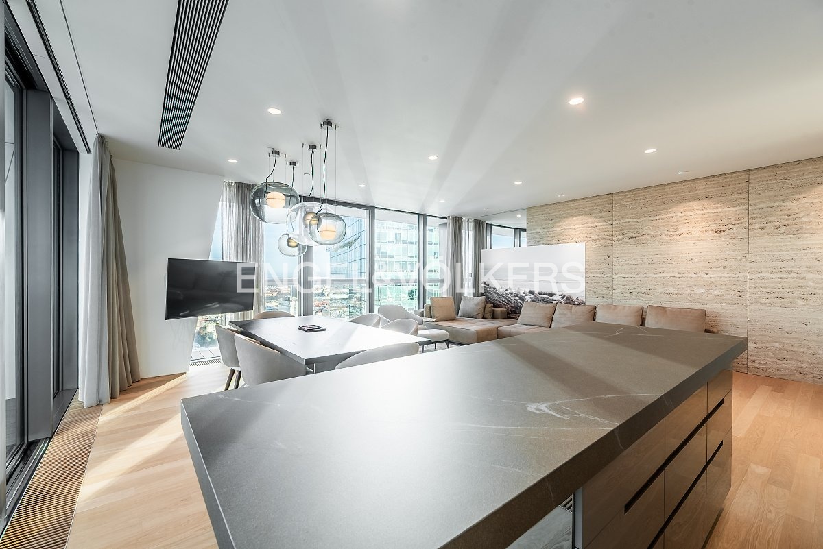 Luxusní bydlení téměř na vrcholu jedné z nejikoničtějších pražských rezidencí. Exkluzivní byt 3+kk s vnitřní plochou 132 m² s terasou 57 m² se nachází ve 27. nadzemním podlaží východní věže prestižní rezidence V Tower na Pankráci. Nabízí dechberoucí výhledy na panorama Prahy a zároveň maximální soukromí.