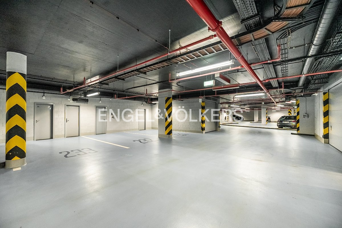 K bytu náleží dvě garážová stání a dva prostorné sklepy (každý 5 m²). Lokalita nabízí kompletní občanskou vybavenost včetně obchodního centra Arkády Pankrác a výbornou dopravní dostupnost díky stanici metra Pankrác. V pěší vzdálenosti se nachází také parky Vyšehrad a Park Jezerka či sportovní a kulturní zázemí jako Form Factory Pankrác nebo Žluté lázně.