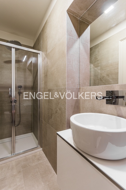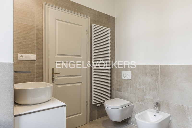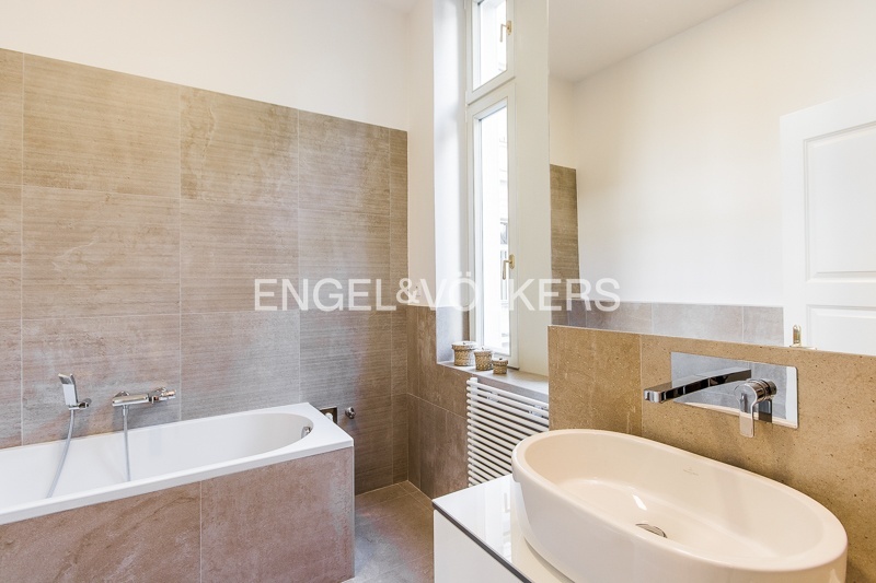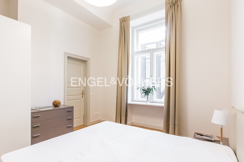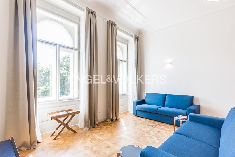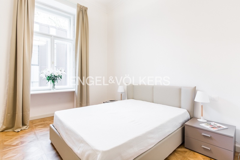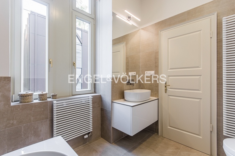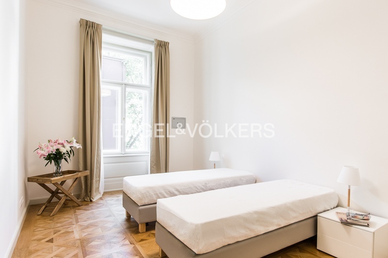 Prostorný a prosvětlený obývací pokoj s jídelním stolem je srdcem tohoto skvělého apartmánu. Oddělená na míru vyrobená italská kuchyně s veškerými spotřebiči nabízí veškerý komfort moderního vaření. Hlavní ložnice orientovaná do tichého vnitrobloku je propojená s vlastní koupelnou a nabízí dostatek úložného prostoru. Moderní rodinná koupelna nabízí vanu, umyvadlo, toaletu a bidet.