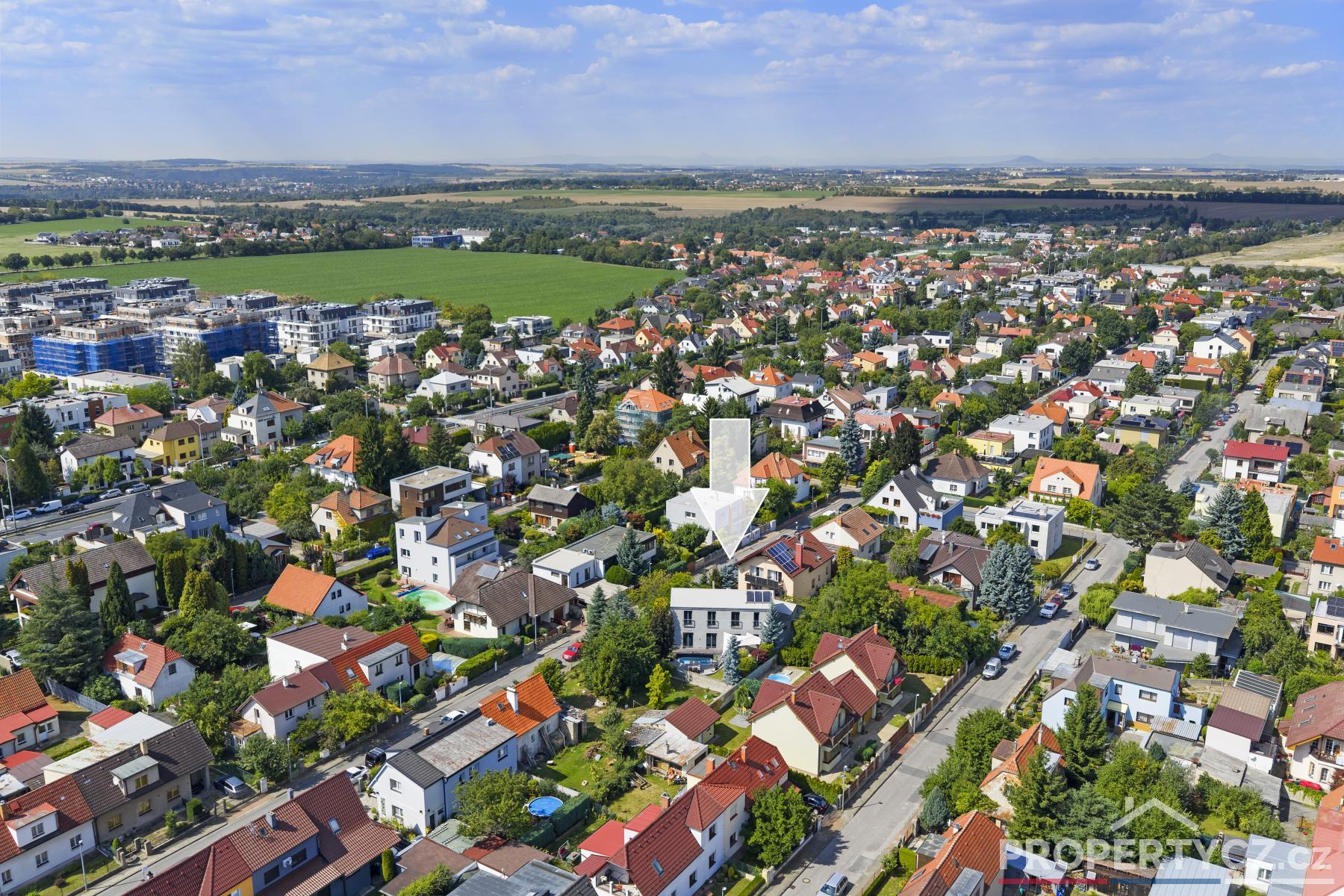 Dům se nachází v klidné ulici mezi rodinnými domy, obklopen zelení a fajn sousedy. Výhodou je výborná dostupnost do centra (15 minut), na metro Kobylisy (4 minuty), na dálnici D8 (5 minut), na letiště (30 minut).