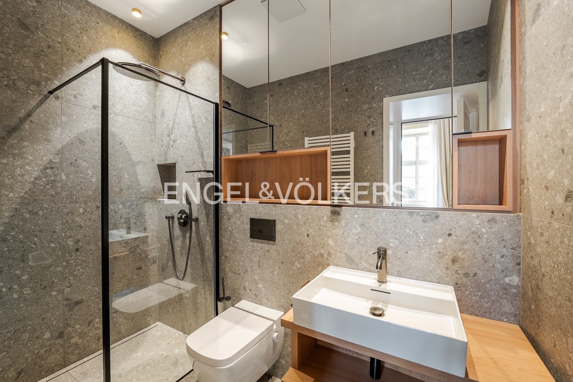 Dispozici bytu tvoří ložnice chytře rozdělená na spací a šatní část s en-suite koupelnou se sprchovým koutem a umyvadlem, dále obývací pokoj propojený s kuchyní vybavenou spotřebiči značky Miele a jídelním prostorem. Součástí bytu je také pracovna s vlastní koupelnou se sprchovým koutem. K vybavení bytu patří rovněž pračka se sušičkou. Velkou předností je výjimečný výhled na Karlův most, který dodává bydlení jedinečnou atmosféru v samém srdci historické Prahy.