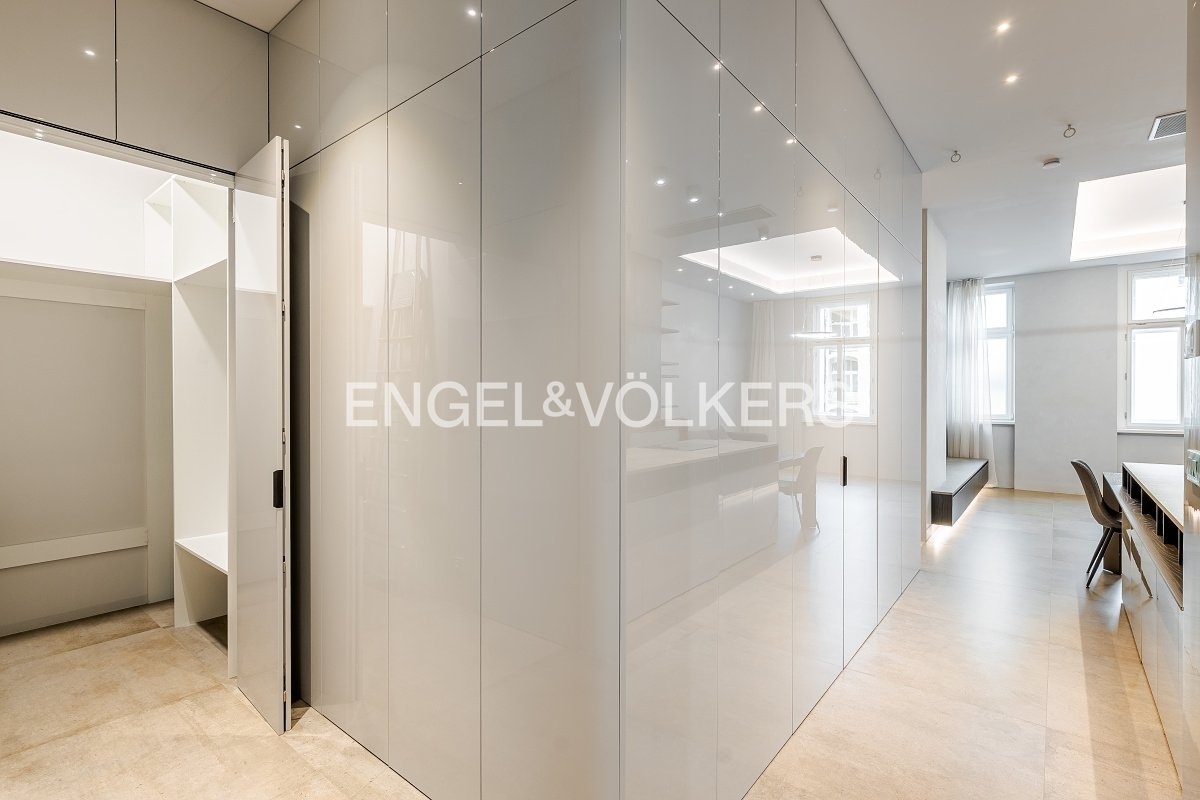 Byt prošel kompletní rekonstrukcí a je připraven k okamžitému nastěhování. Interiér byl navržen s důrazem na vysoký standard a funkční design – použity byly kvalitní materiály, velkoformátová dlažba, vestavěné skříně ve všech místnostech, špičkové vestavěné spotřebiče, pračka a sušička.