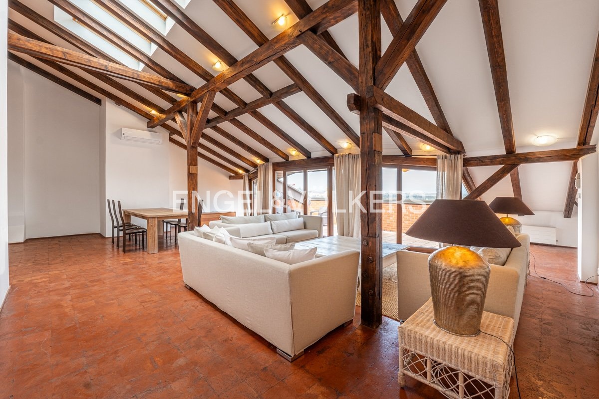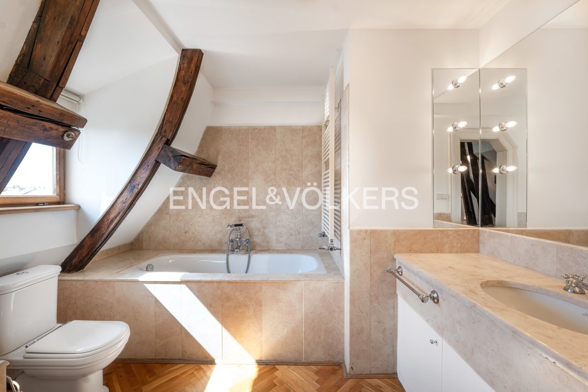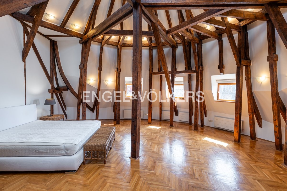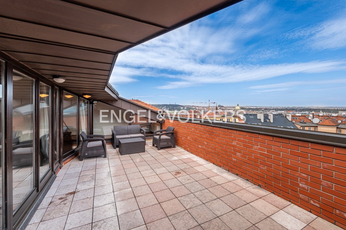 Nabízíme k dlouhodobému pronájmu stylový dvouúrovňový byt 5+1 s terasou o velikosti 24 m², která nabízí nádherný výhled na Pražský hrad, kostel sv. Ludmily a náměstí Míru s přilehlým parkem. Byt se nachází v 5. a 6. patře reprezentativní budovy po rekonstrukci, v prestižní rezidenční lokalitě pražských Vinohrad.