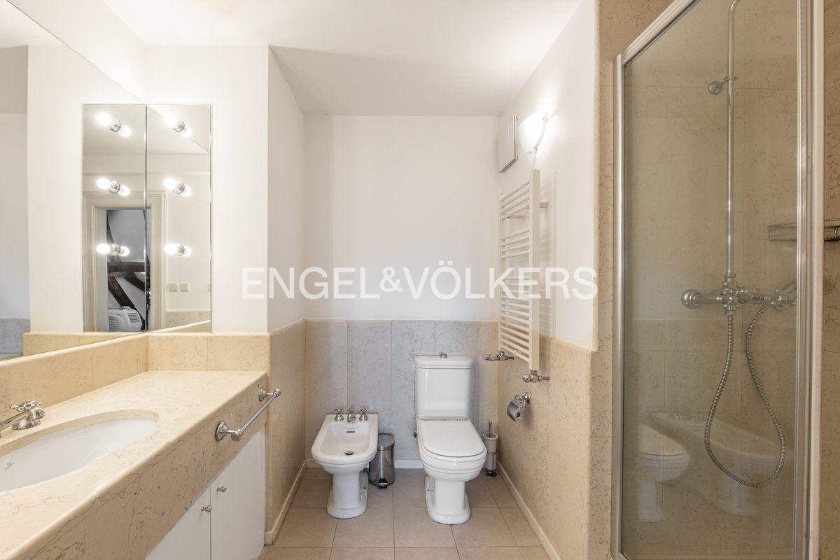 Dispozice zahrnuje plně vybavenou otevřenou kuchyni, prostorný obývací pokoj s jídelní částí a přímým vstupem na terasu, hlavní ložnici s vlastní koupelnou v romantickém prostoru ve věži s původním dřevěným trámovím, další dvě ložnice s vlastními koupelnami a galeriemi, galerii/pracovnu nad obývacím pokojem, toaletu pro hosty, komoru a samostatnou prádelnu.
