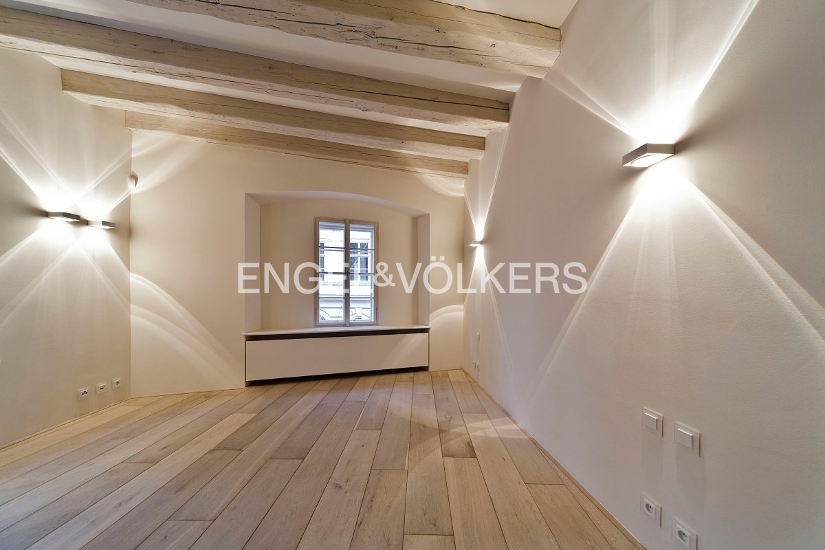 Nabízíme k pronájmu jedinečný kompletně zrekonstruovaný a nezařízený byt s dispozicí 3+1, který se nachází v 1. patře citlivě obnoveného barokního paláce s historií sahající až do 15. století. Byt je situován v prestižní lokalitě na Malé Straně, jen několik kroků od Karlova mostu a Kampy a v pěší dostupnosti Pražského hradu. Tiché prostředí historické ulice zajišťuje klidné bydlení, přesto je lokalita výborně dostupná – tramvajová zastávka na Malostranském náměstí je vzdálená pouhou minutu chůze a stanice metra Malostranská přibližně pět minut.