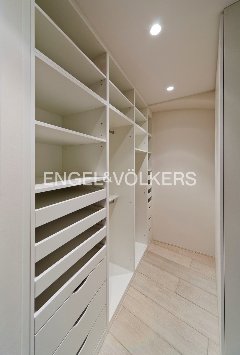 Interiér bytu nabízí prostorný obývací pokoj s plynovým krbem, plně vybavenou kuchyň se spotřebiči značek Miele a Siemens, zimní zahradu se skleněným stropem, hlavní ložnici s vlastní šatnou, koupelnu s vanou a toaletou, průchozí ložnici s možností využití i jako pracovny, samostatnou toaletu pro hosty a velkorysou vstupní halu. Vysoký standard provedení elegantně kombinuje moderní design s autentickými historickými prvky mezi něž patří trámové stropy a původní architektonické detaily. Součástí vybavení jsou dřevěné podlahy, bezpečnostní systém s alarmem a videotelefon.