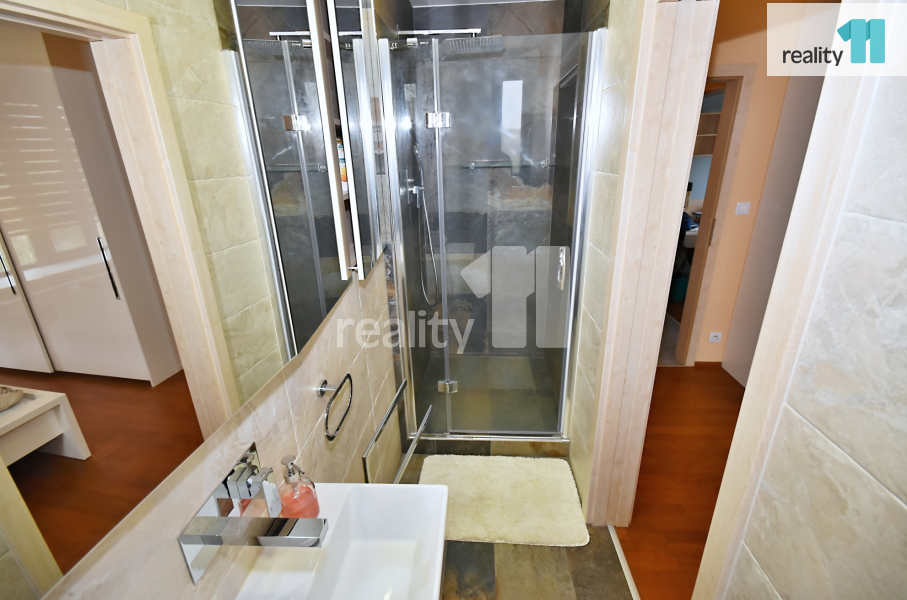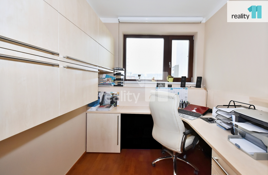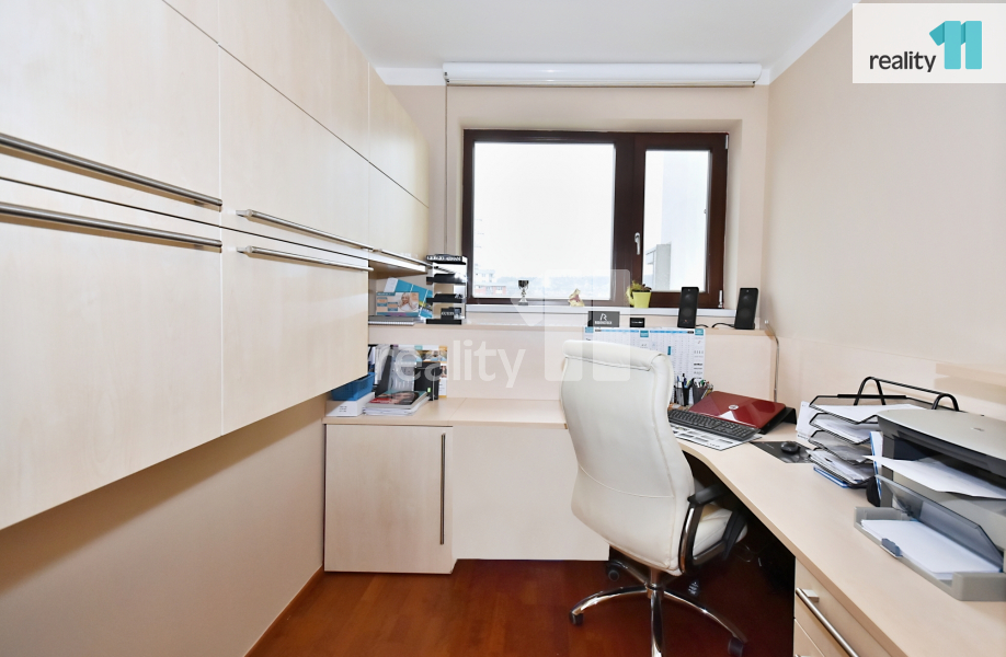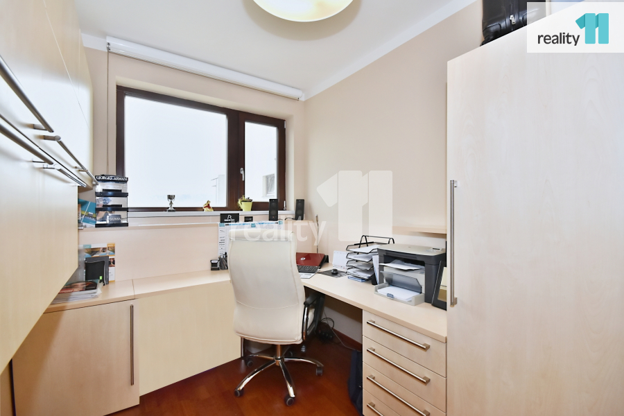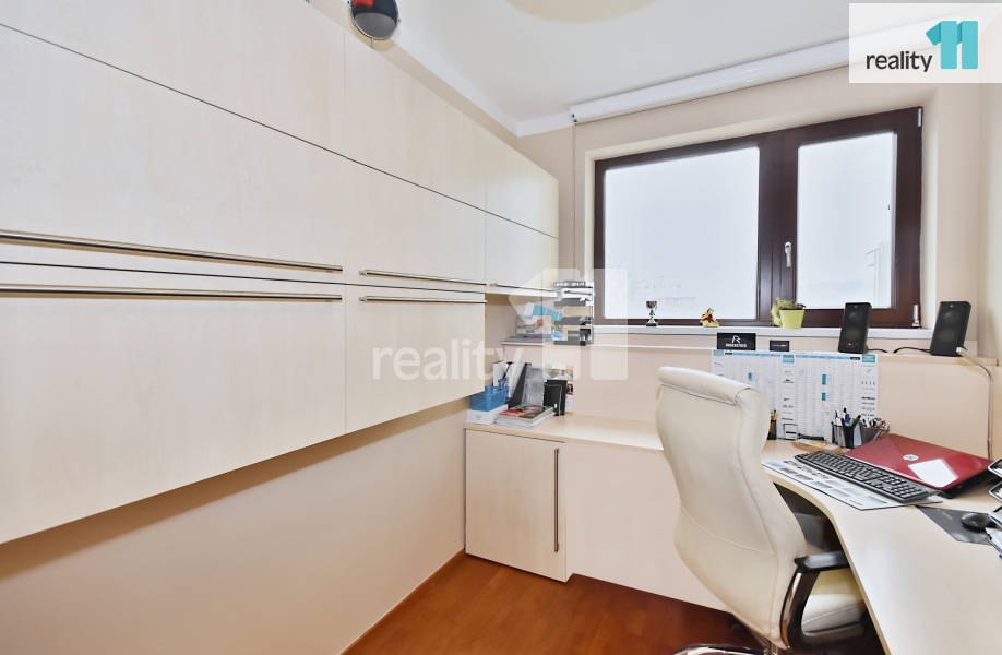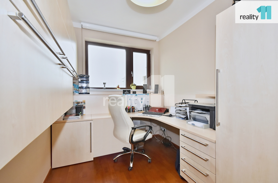 Naše společnost Vám zprostředkuje prodej krásného velmi dobře dispozičně řešeného bytu 4+kk/B o celkové velikosti 93 m². Byt se nachází ve druhém patře novostavby v uzavřeném areálu jedinečného projektu Kejřův park v Praze 9 Hloubětíně. K bytu patří sklep a a lze dokoupit za 990.000,- prostorné garážové stání. Většina nábytku byla vyrobena na míru a díky tomu má byt dostatek úložného prostoru. V kuchyni kuchyňská linka Hanak na míru včetně vestavěných spotřebičů. Výhled z balkónu je do zeleně směrem k rybníku. Po celém bytě jsou vestavěné skříně. Ve standardu bytu jsou dřevěná euro okna, obložkové zárubně, dřevěné plovoucí podlahy, bezpečnostní dveře. V bytě jsou 2 koupelny a v každé sprchový kout, pracovna a šatna. Měsíční poplatky jsou cca. 5.000,- Předností této nabídky je výborné umístění projektu, provedení bytu ve vyšším standardu, kompletní vybavení bytu a příslušenství bytu v podobě garážové stání a sklepa. Byt je orientován na 3 světové strany. Areál je oplocený s 24 hodinovou ostrahou, jeho součástí jsou dětská hřiště, beach volejbalový kurt či minigolf. Za domem je revitalizovaný rybník, nový park s jezírky a cyklostezka. Jen několik minut chůze je vzdálená zastávka tramvaje a metro Hloubětín. Vřele doporučuje toto klidné a bezpečné bydlení uprostřed přírody a přitom snadno dostupné z centra města. Ev. číslo: 19209.