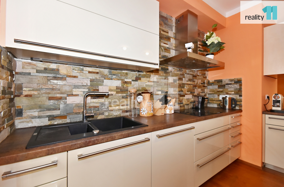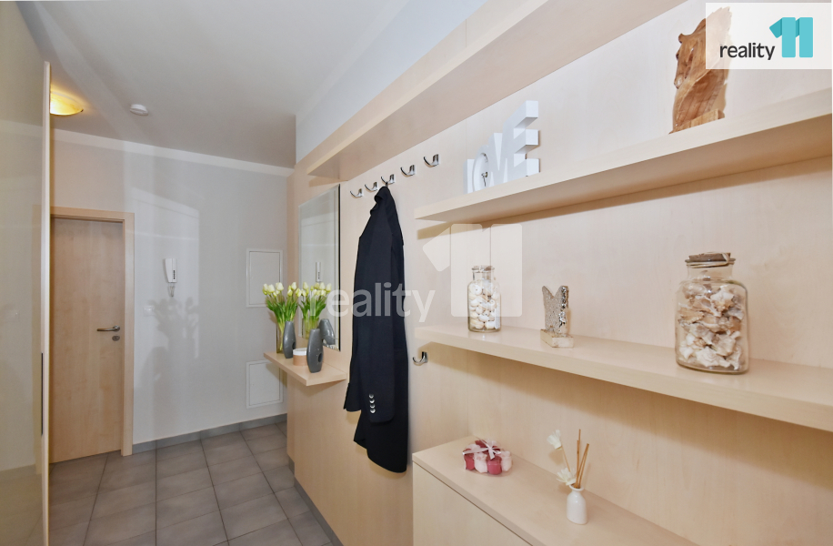 Popis vybavení:V kuchyni kuchyňská linka Hanak na míru včetně vestavěných spotřebičů. Výhled z balkónu je do zeleně směrem k rybníku. Po celém bytě jsou vestavěné skříně.