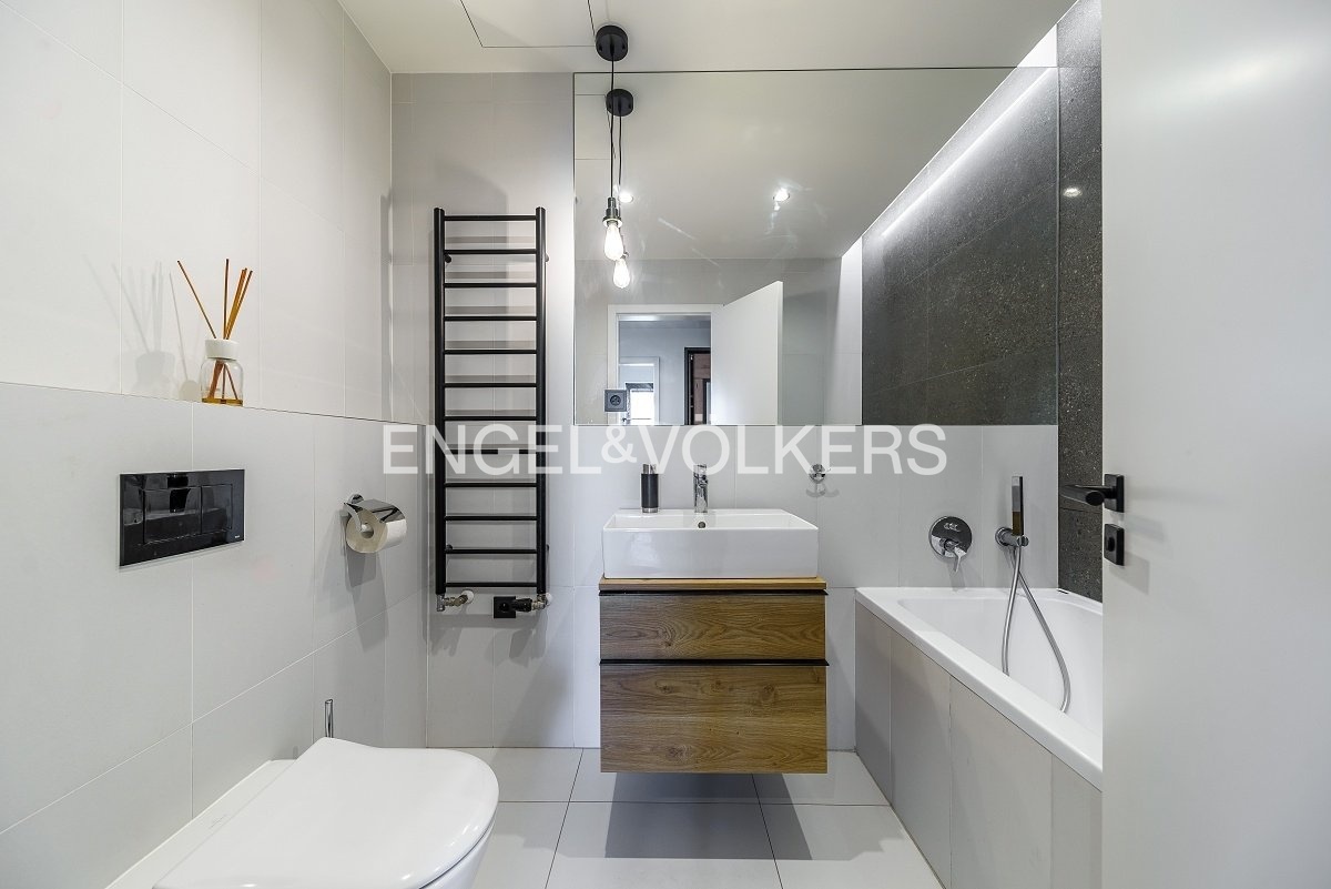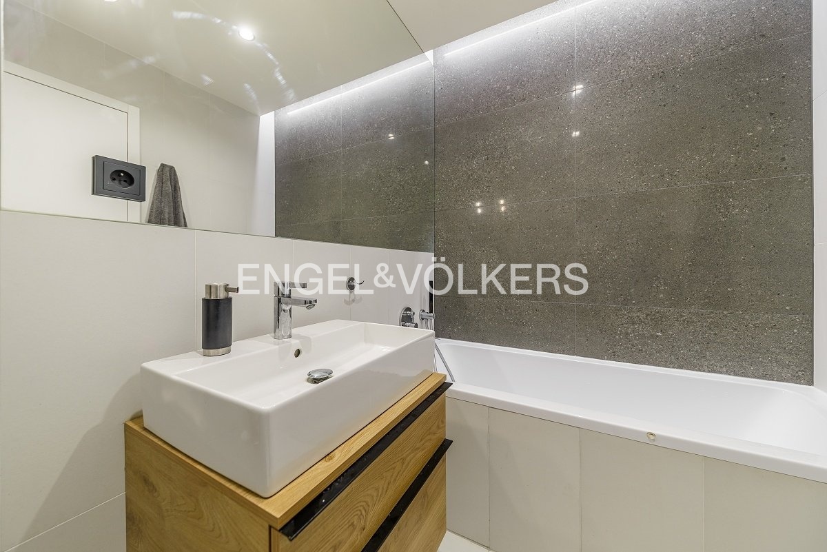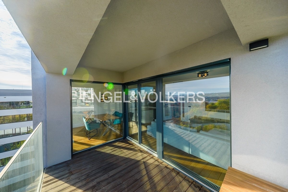 K okamžitému pronájmu je připravený exkluzivní byt, který se nachází v 6. nadzemním podlaží nové rezidence Neugraf. Velmi praktická dispozice s prostorným obývacím pokojem a s kuchyní na míru vybavenou všemi spotřebiči a vstupem na balkon s krásnými výhledy na Prahu, ložnicí orientovanou do klidné ulice, koupelnou se sanitou Villeroy & Boch, technickou místností s pračkou a sušičkou. Velmi vysoký standard dokončení bytu s dřevěnou masivní podlahou, předokenními žaluziemi, klimatizací, rekuperací a kompletním propojením na chytrou domácnost. K bytu náleží sklepní kóje, a parkovací stání za příplatek 3 900 Kč / měsíc.