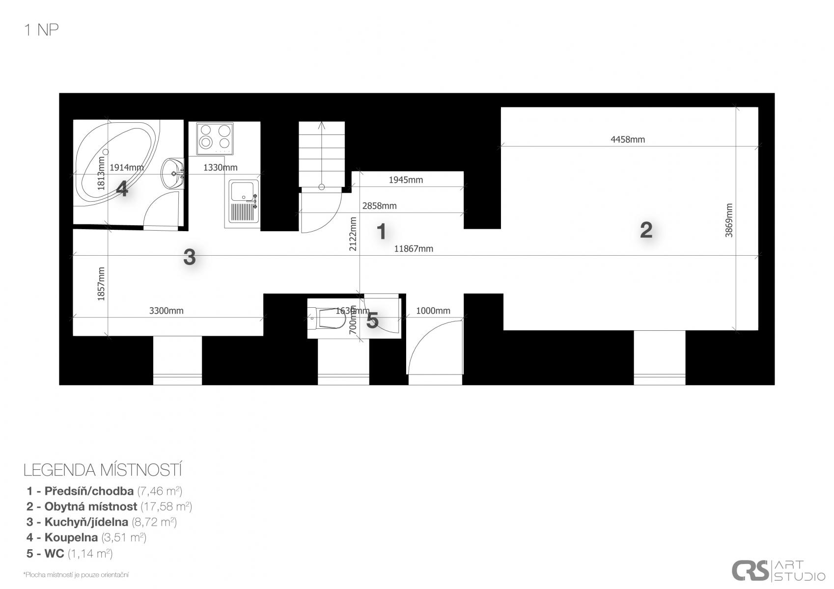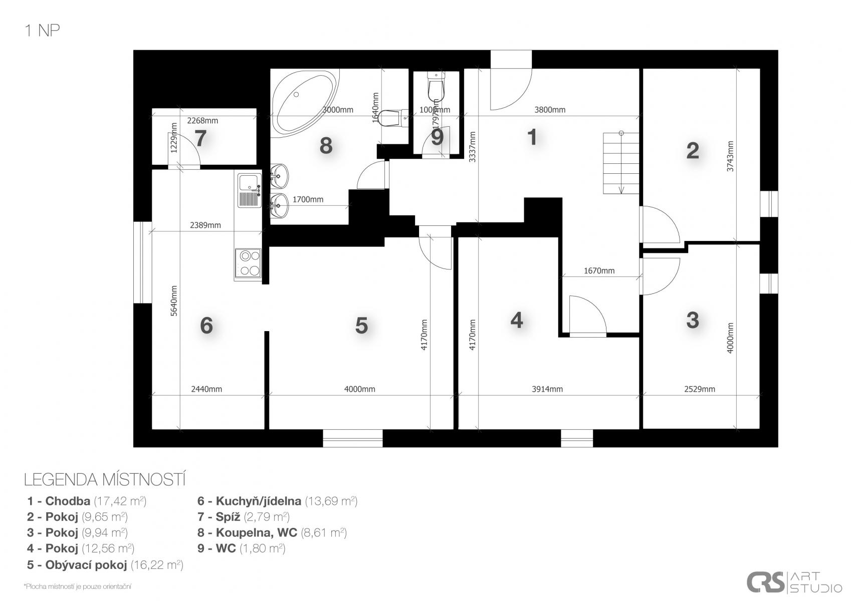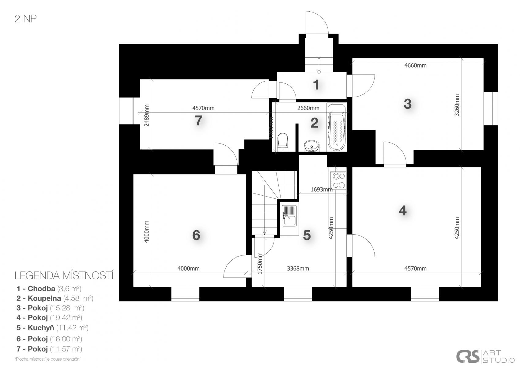 Částečná rekonstrukce (přízemí a podkroví), zbytek v původním stavu možnost realizace dle vlastních představ