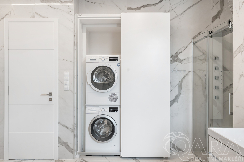 ✔️ Druhá koupelna s přípravou na saunu, sprchovým koutem, toaletou, pračkou a sušičkou