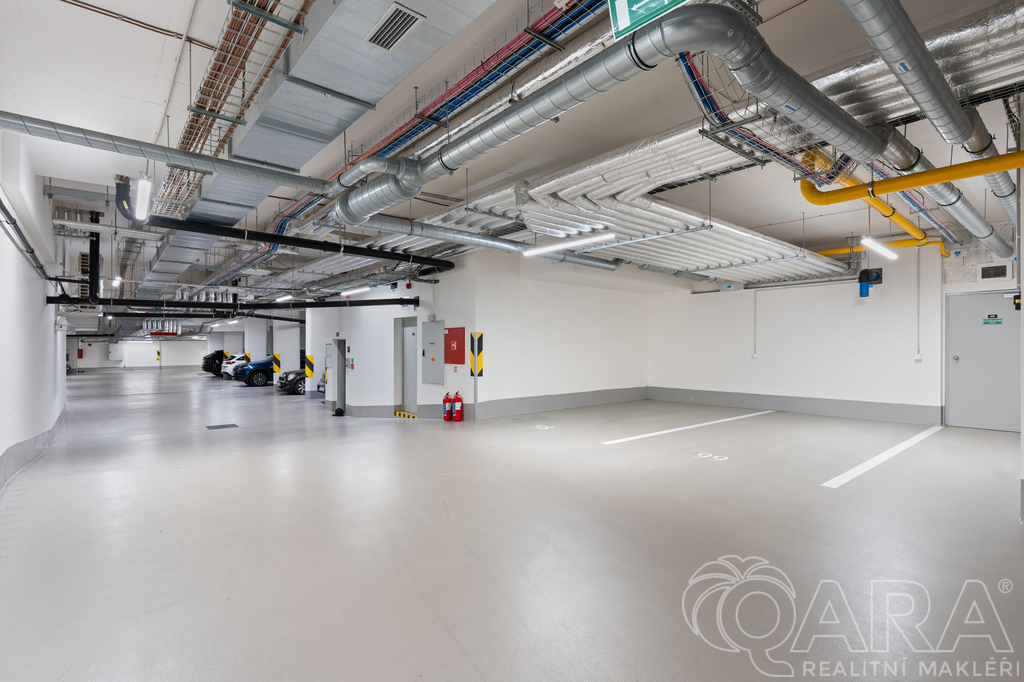 ✔️ Parkovací stání v garážové hale (12 m²) se samostatnou zásuvkou pro nabíjení elektromobilu + možnost pronájmu druhého stání (14 m²)