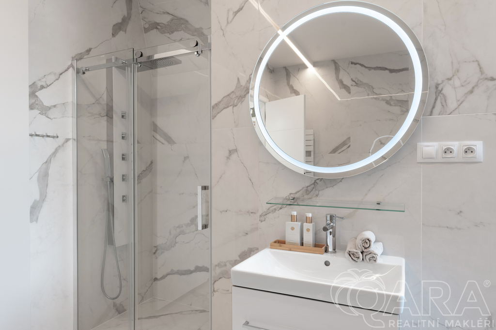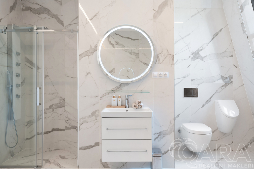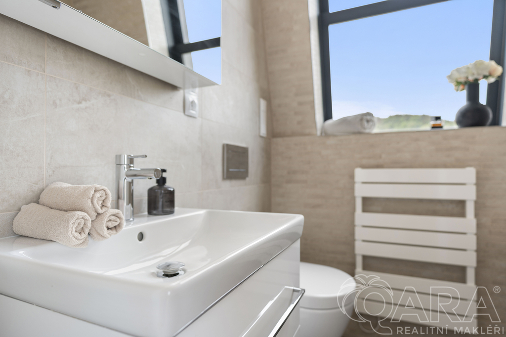 ✔️ Druhá koupelna s přípravou na saunu, sprchovým koutem, toaletou, pračkou a sušičkou