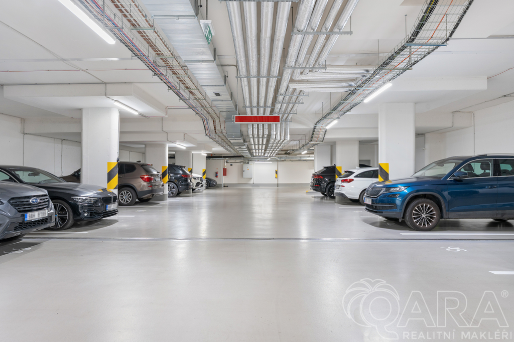✔️ Parkovací stání v garážové hale (12 m²) se samostatnou zásuvkou pro nabíjení elektromobilu + možnost pronájmu druhého stání (14 m²)