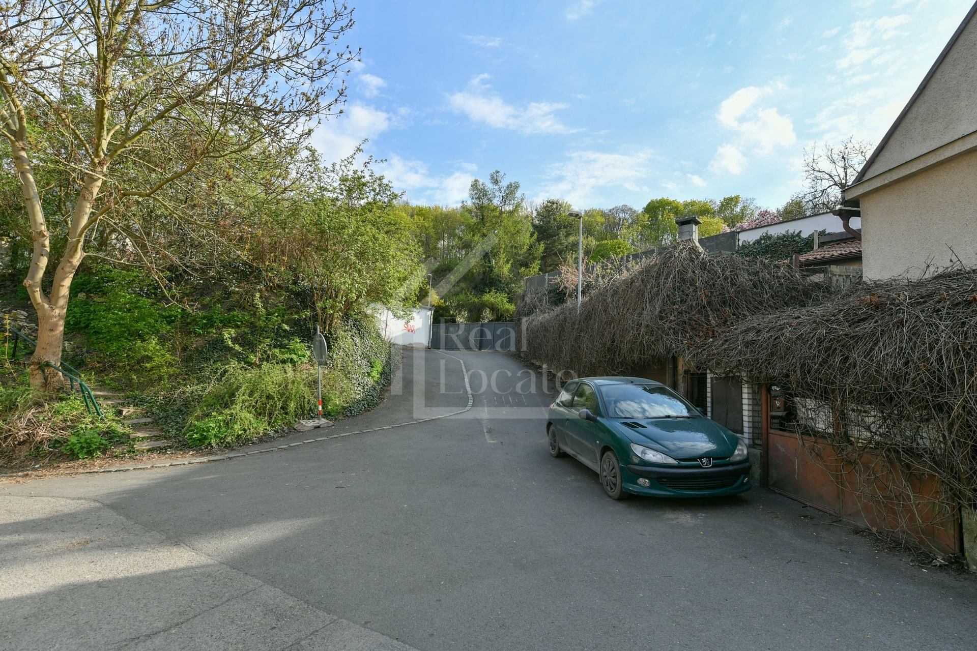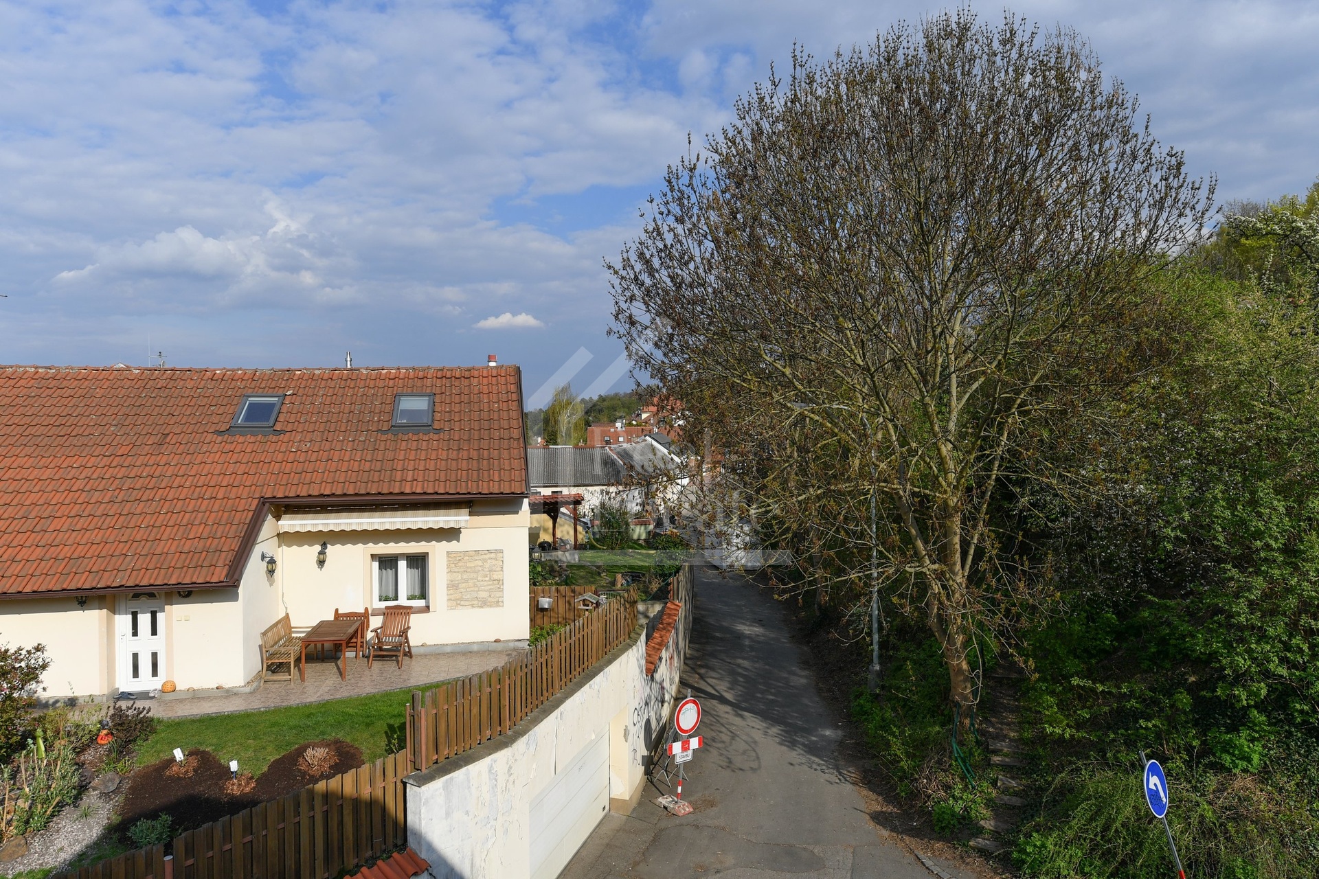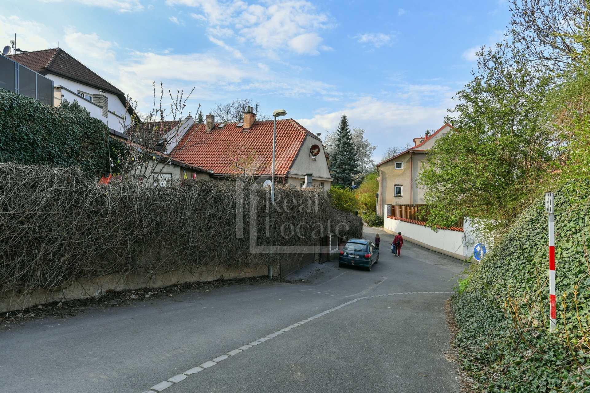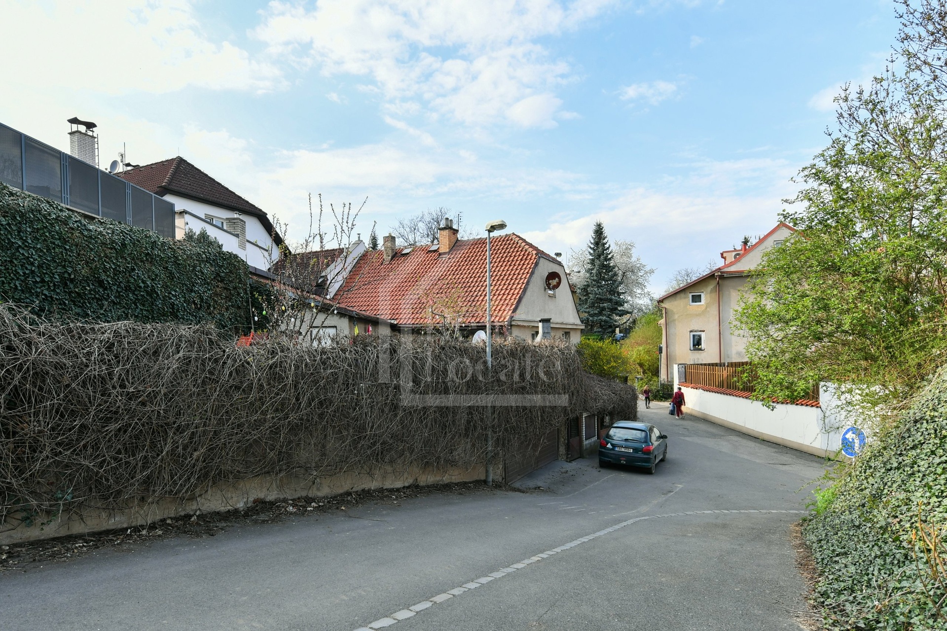 Klidná rezidenční ulice bez rušného provozu.