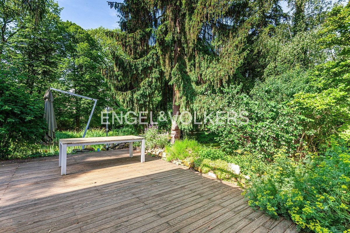 Celý dům je zasazen do rozlehlého pozemku o výměře 6 772 m², který nabízí naprosté soukromí a řadu možností pro trávení volného času – ať už na terase, u jezírka, nebo v zeleni zahrady. Samotný dům nabízí nájemcům vysoký standard jako jsou například masivní dřevěné podlahy, kvalitní materiály použité ve všech koupelnách a klimatizace.