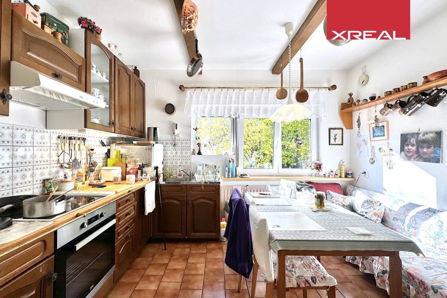 Samostatně stojící rodinný dům s celkovou plochou 197 m2 a praktickou dispozicí s 2 koupelnami, 3 WC a dostatečným zázemím, včetně dílny. Ideální pro rodinu i dvougenerační bydlení, v podstatě dvakrát 2+1, případně i domácí podnikání. Obývací pokoj s krbovými kamny pro zahřátí i pohodu. Velká průjezdná garáž 26 m2 s možností parkování dalšího vozu na pozemku. Kvalitní třípodlažní stavba kolaudovaná v roce 1975 v průběžně udržovaném a modernizovaném stavu. Střecha byla opravena v roce 2005, dvojitá plastová okna s předokenními žaluziemi jsou z roku 2002. Horní podlaží a kuchyň byly rekonstruovány v roce 2002 s novými přívody elektřiny a vody. Objekt je napojen na inženýrské sítě – vodu, elektřinu, plyn, kanalizaci i telekomunikace. Centrální vytápění a ohřev vody plynovým kondenzačním kotlem BUDERUS GB 112-24. Roční spotřeba plynu na vytápění a ohřev vody v posledním zúčtovaném období byla 1 655 m3, tedy 18,122 MWh, spotřeba elektřiny bývá kolem 1,875 MWh a vody kolem 45 m3. Energetická náročnost budovy je třídy G. Dům je po celý den příjemně osluněn, orientace průčelí je jihovýchodní, zahradní strany pak severozápadní.