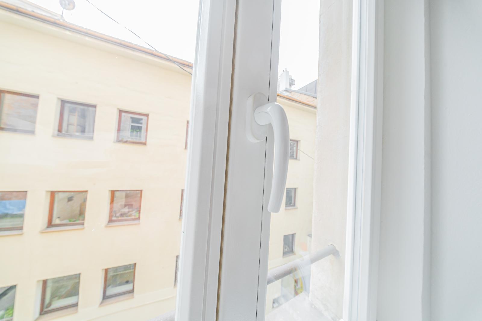 Jednotka se nachází v 1. nadzemním podlaží cihlového domu, ale všechna okna jsou orientována do vnitrobloku, který je o dvě patra níže. Máte tedy zaručený klid a bezpečí.