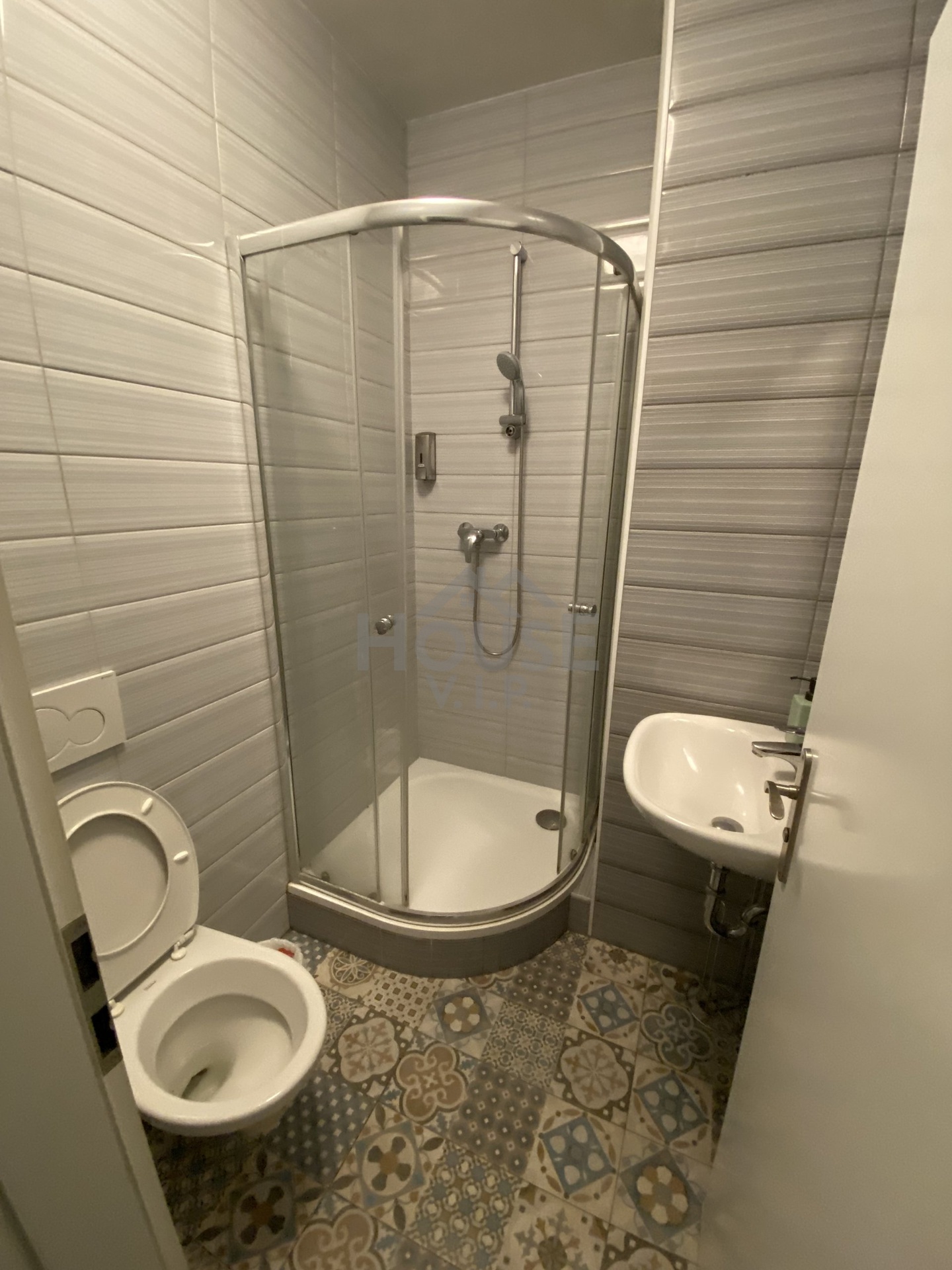 V obytných částech je plovoucí podlaha, v kuchyni a v koupelnách je dlažba.