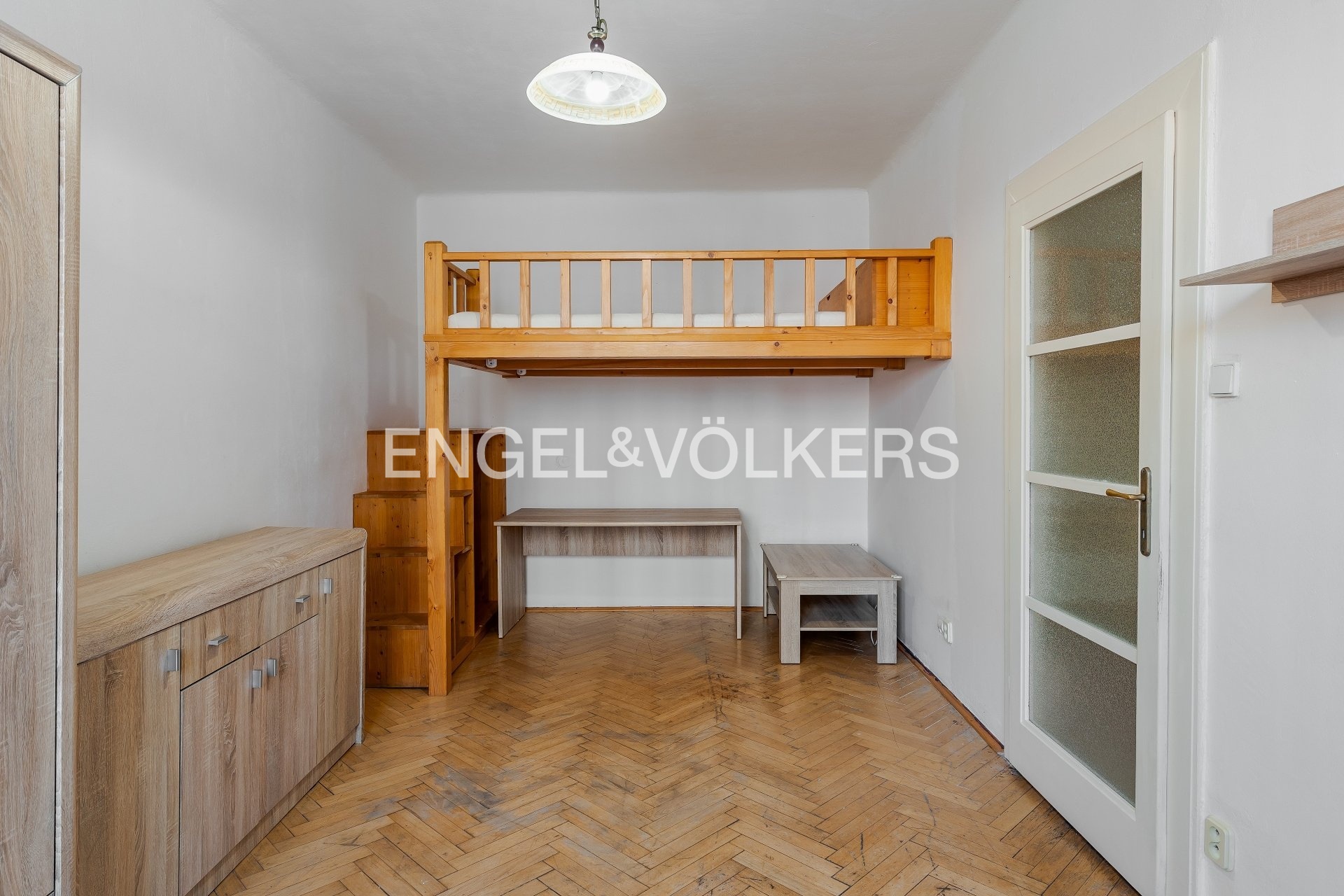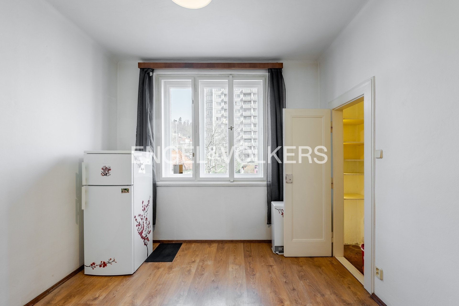 Nabízíme ke koupi byt o dispozici 2+kk, nacházející se ve zvýšeném 2. nadzemním podlaží cihlového domu v ulici Ke Krči v pražském Braníku. Byt je v udržovaném stavu a představuje ideální příležitost k rekonstrukci podle představ nového majitele. Interiér si zachoval některé původní prvky, zejména dřevěné parkety v obytném pokoji a klasická špaletová okna, která prostoru dodávají charakter. Vytápění je řešeno lokálně – v jednom pokoji plynovým topidlem WAW a ve druhém akumulačními kamny. Díky zvýšenému umístění postele zůstává podlahová plocha volná pro další využití a místnost tak působí vzdušněji.